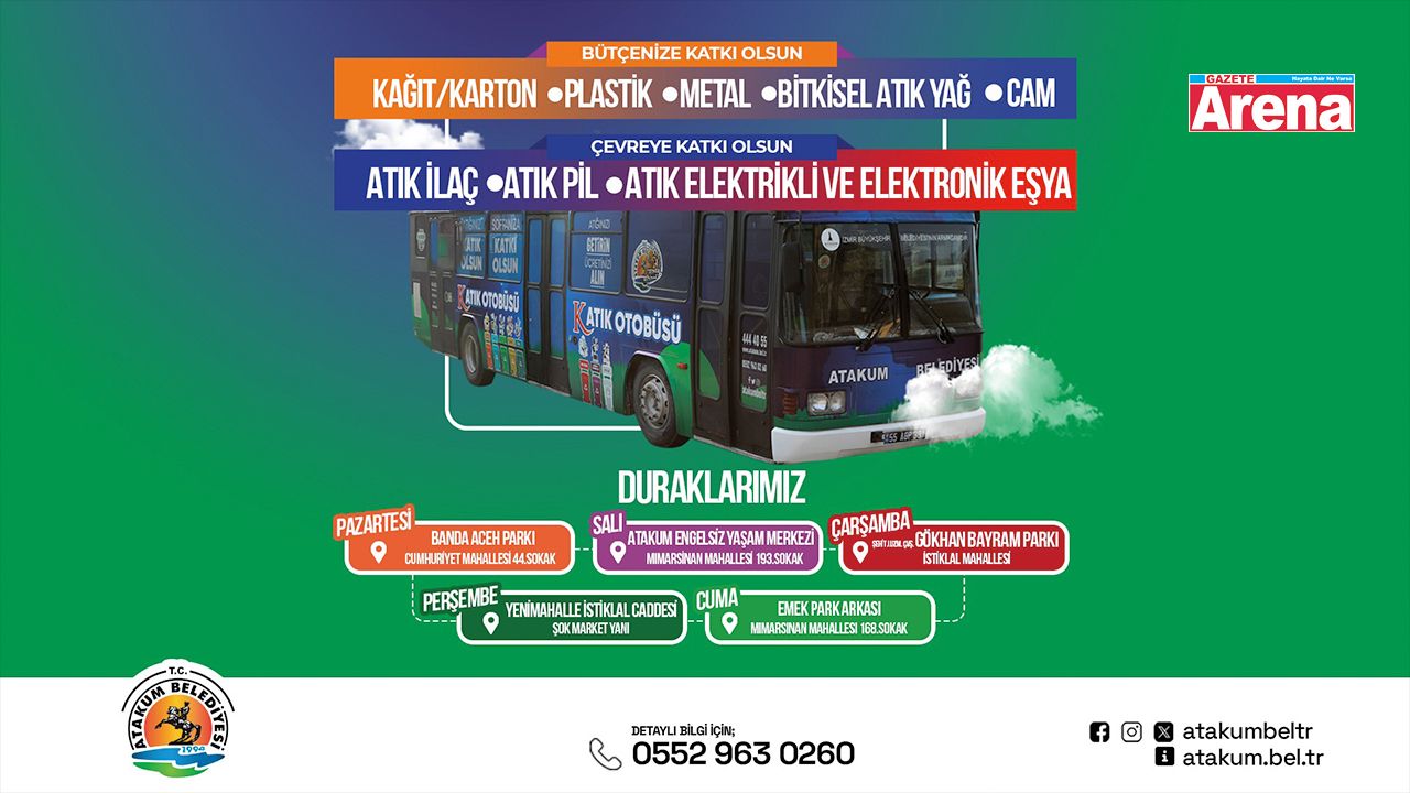 Atakum Belediyesi İklim Değişikliği ve Sıfır Atık Müdürlüğü tarafından, hizmetle ilgili yapılan açıklamada “Başkanımız Serhat Türkel’in öncülüğünde, sıfır atık çalışmalarımıza son hız devam ediyoruz. Atakum Belediyesi Katık Otobüsü projesi ile hem kentimizde çevre kirliliğinin önüne geçmeyi, hem de doğayı koruyarak ülke ekonomisine katkı sağlamayı hedefliyoruz. Vatandaşlarımız evlerinde bulunan kağıt, plastik, metal, cam, bitkisel yağ atıklarını katık otobüsüne getirerek sıfır atık çalışmalarına katkı sağlarken, atıkları da ekonomik değere dönüştürebilirler. Ayrıca elektronik ve pil atıklarını da geri dönüşüme kazandırarak, çevreye verdiği zararların önüne geçebilirler. İnsan ve doğa için tehdit oluşturan ilaç atıkları, bilindiği gibi bertaraf ediliyor. Belediyemizin doğa dostu Katık Otobüsüne, tüm vatandaşlarımızı bekliyoruz.” dedi.