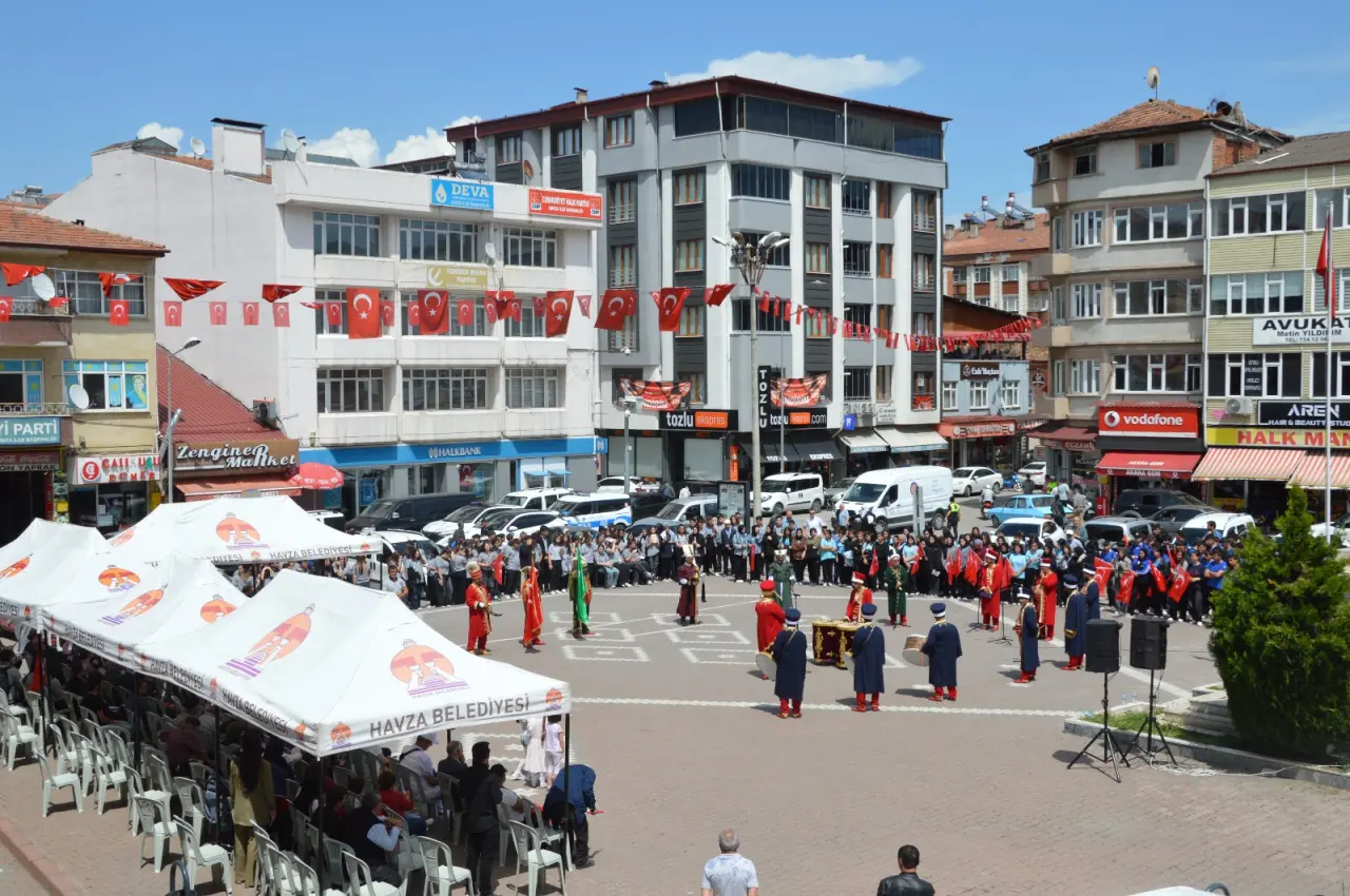 Samsun’un Havza ilçesinde 30. Geleneksel Atatürk’ü Anma ve Termal Turizm Festivali'nin açılış etkinliği, mehter takımı eşliğinde düzenlenen kortej yürüyüşüyle başladı. Yürüyüşe Havza Kaymakamı Mustafa Ayvat, Belediye Başkanı Av. Murat İkiz, ilçe protokolü, öğrenciler ve çok sayıda vatandaş katıldı. Havza Belediyesi önünden başlayan kortej, Mehmetçik Meydanı’nda sona erdi. Yürüyüş boyunca Türk bayraklarıyla donatılan caddelerde vatandaşlar büyük bir coşku yaşadı.