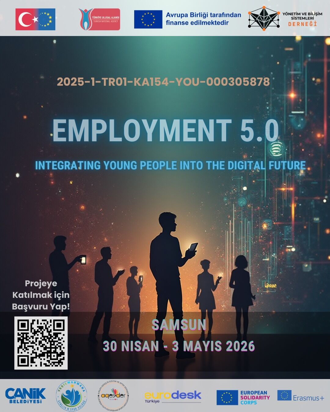 Canik Belediyesi'nin Avrupa Birliği tarafından desteklenen 'Employment 5.0' Gençleri Dijital Çağa Entegre Etmek eğitim projesine başvurular, 6 Nisan 2026 tarihine kadar kabul edilmeye devam edilecek. Projeye, ülke genelindeki 18-30 yaş aralığındaki gençler başvuru işlemlerini kolaylıkla gerçekleştirebiliyor. Başvuru işlemleri, Canik Belediyesi'nin sosyal medya hesaplarında yer alan başvuru formunun doldurulmasıyla tamamlanıyor. Proje hakkında detaylı bilgiye belediyenin çözüm merkezi ve başvuru formu içerisinde yer alan bilgilendirme bölümünden ulaşılabiliyor.