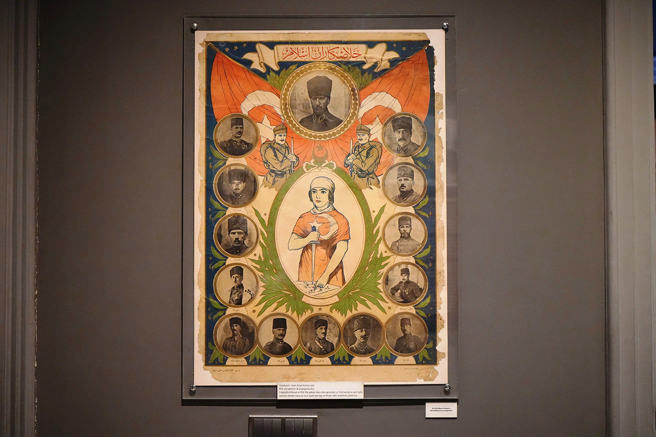 Müzede birçok önemli eserin yer aldığına değinen Nilgün Sarıçoban, “Müzede satın alınan hiçbir ürünümüz yok. Tamamen vatandaşların bağışlarıyla büyüyen bir müzeyiz. Samsun halkı gönüllerinden kopan, hikayeleri olan eserleri bize bağışlıyorlar. Bazı önemli eserlerimiz müzede sergileniyor. Bunlardan biri Milli Mücadele’nin ilk propaganda afişi olan Halâskârân-ı İslâm afişi. Bu propaganda afişi döneminde yalnızca 10 adet taş baskı ile basılmıştır. Mustafa Kemal ve silah arkadaşlarının yer aldığı ilk Milli Mücadele afişlerinden bir tanesi olması özelliğini taşıyor. Afişin adı İslam Kurtarıcıları anlamına geliyor. Afişin tam ortasında Türk bayrağına sarılı bir kadın figürü bulunuyor. Bu kadın, Türk vatanını temsil etmekte. Önündeki harita ve elinde kılıcıyla birlikte bize Mîsâk-ı Millî sınırlarını işaret ediyor” diye konuştu.