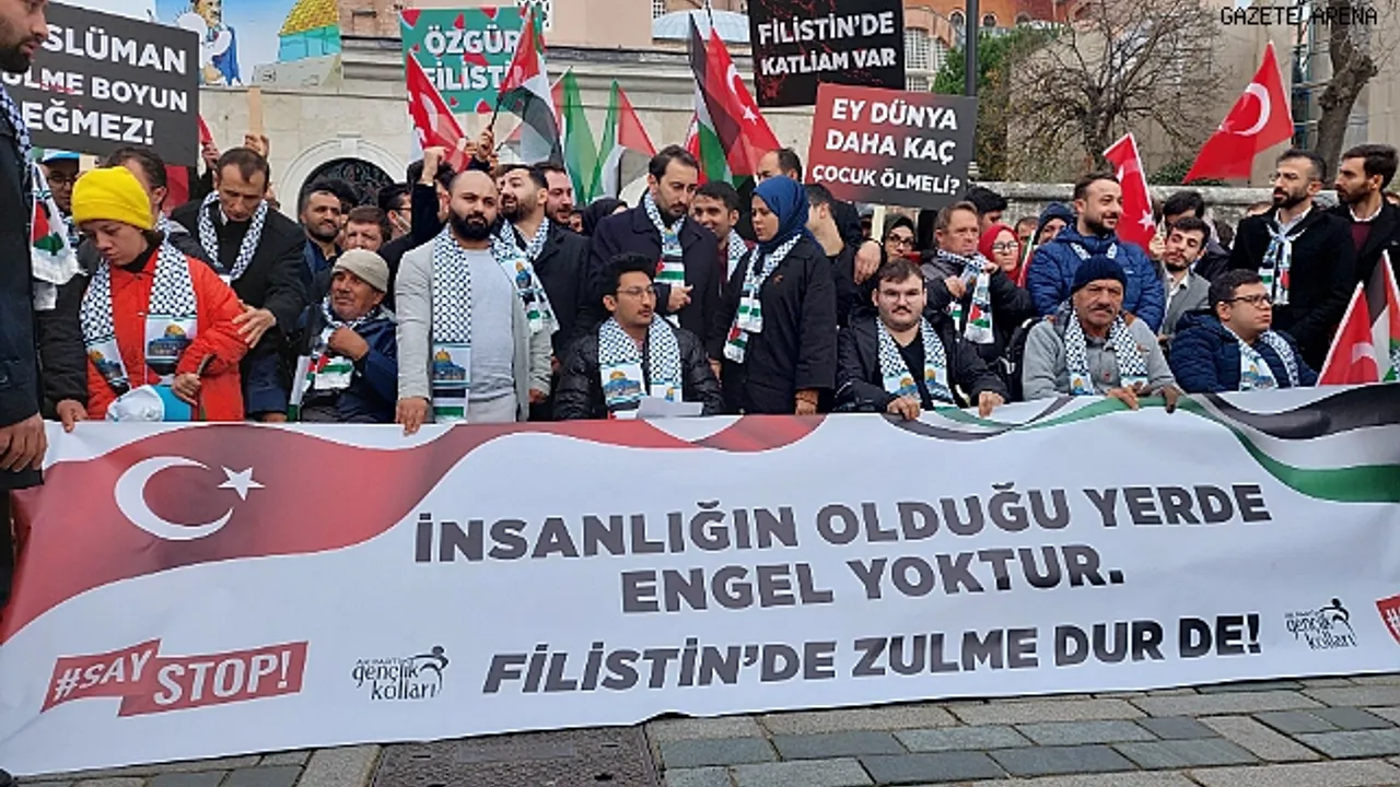 Ayasofya Camii önünde Filistinliler için ‘SayStop’ eylemi