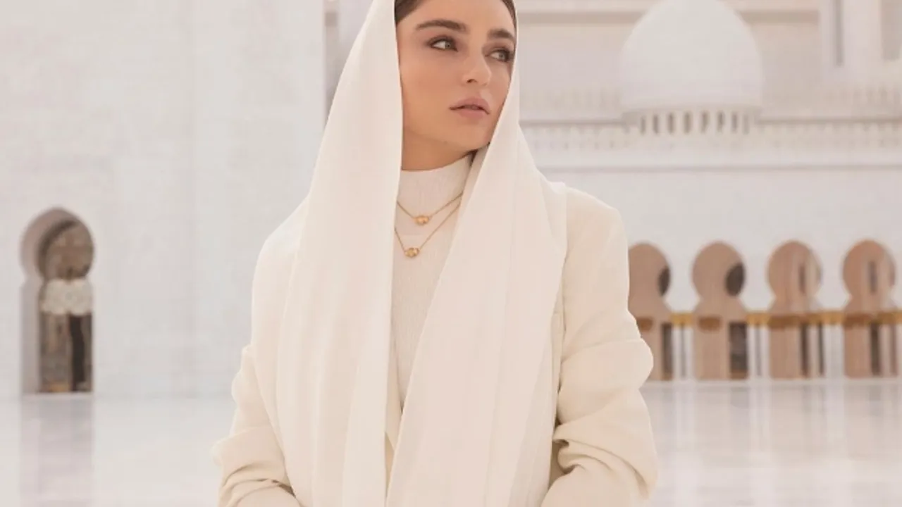 Güzel oyuncu, Abu Dabi ziyaretinde Şeyh Zayid Camii'ne ziyarette bulundu.