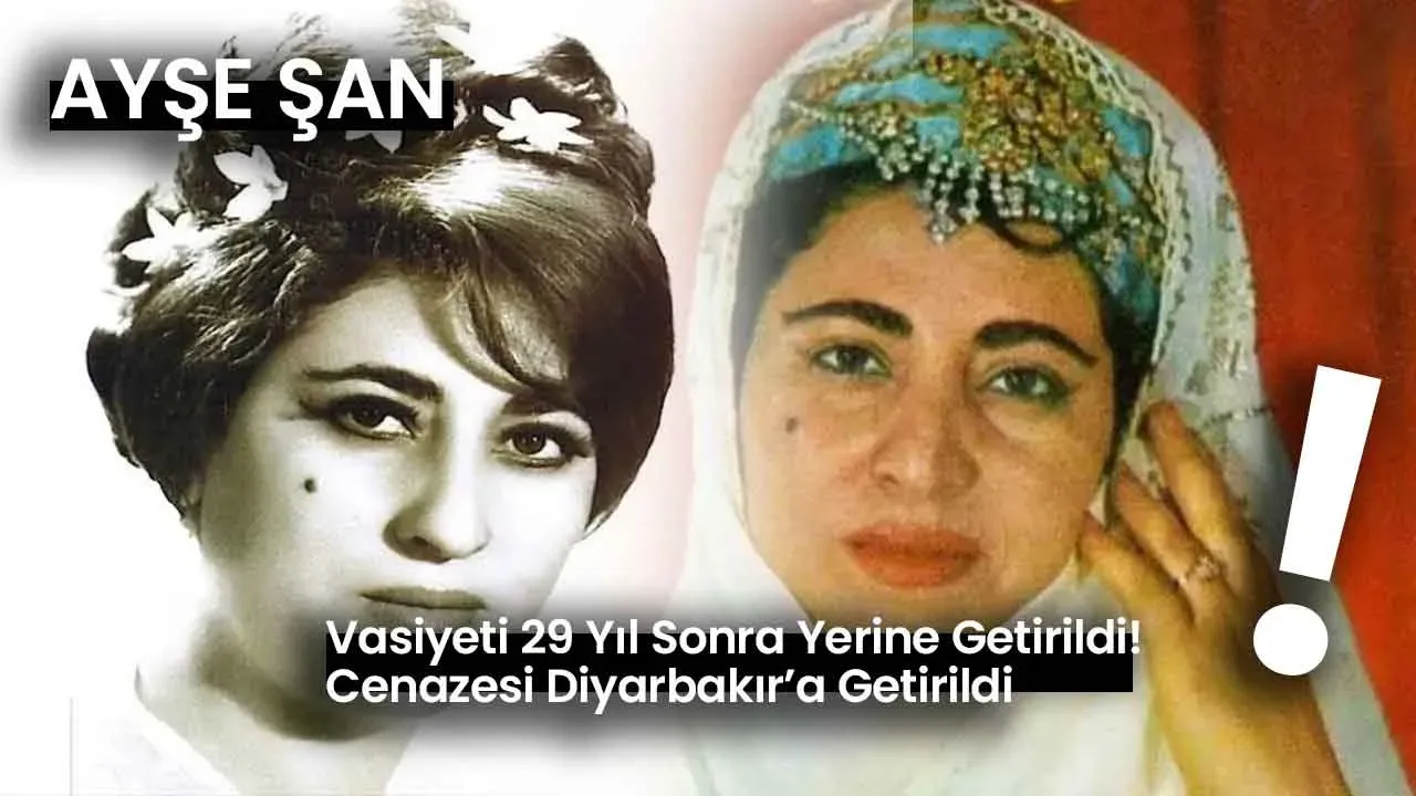 Kürt müziğinin "taçsız kraliçesi" olarak bilinen Ayşe Şan, ölümünden 29 yıl sonra yeniden gündemde. 1996 yılında İzmir’de hayatını kaybeden sanatçının cenazesi, maddi imkânsızlıklar nedeniyle Diyarbakır’a defnedilememişti. Ancak yıllar sonra vasiyeti yerine getirildi ve bugün, ailesi ile Diyarbakır Büyükşehir Belediyesi’nin girişimleri sonucu naaşı Diyarbakır’a getirildi.