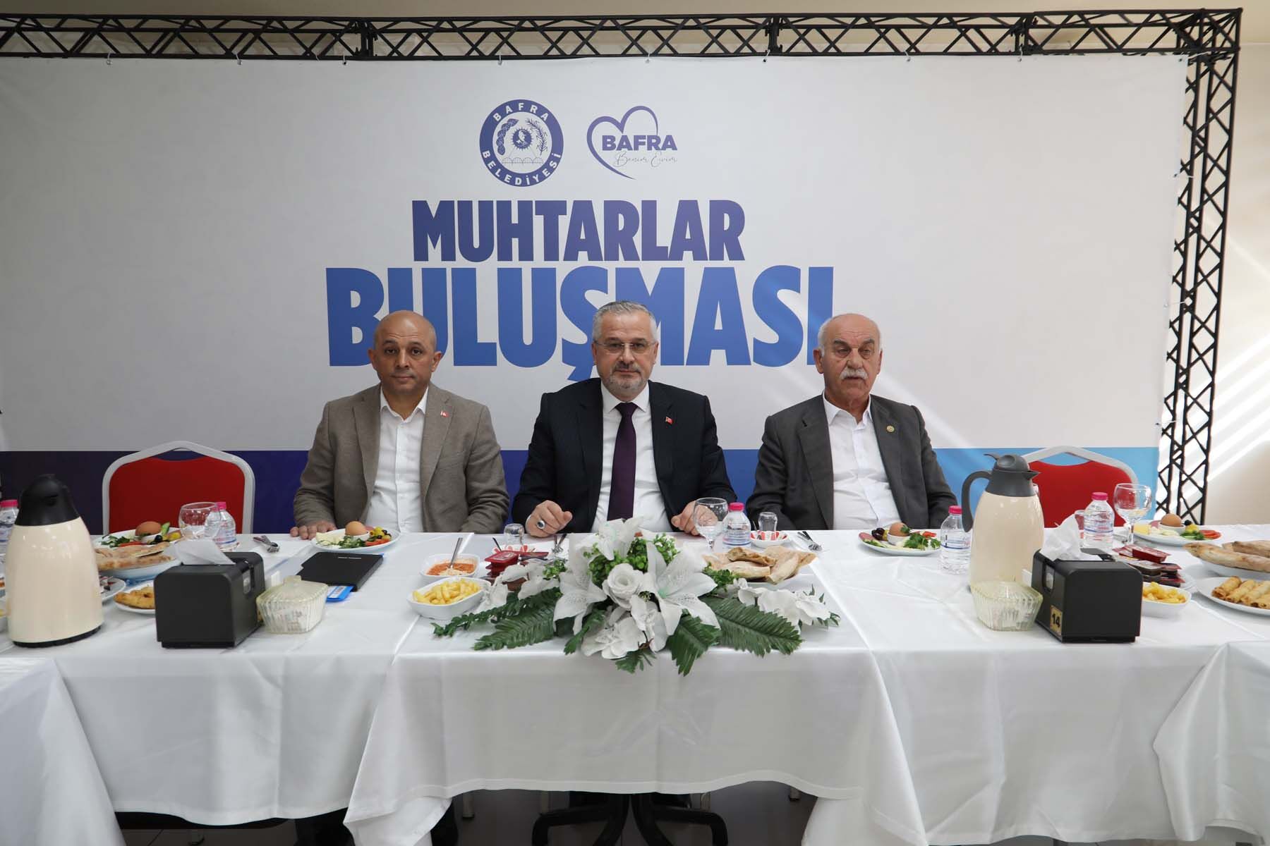“Bafra’mız için en iyisini hedefliyor, bu doğrultuda çalışmalarımızı kararlılıkla sürdürüyoruz. Yerel yönetimin önemli bir parçası olarak gördüğümüz muhtarlarımızla düzenli olarak bir araya geliyor mahallelerimizin ihtiyaçlarını doğrudan öğreniyoruz.