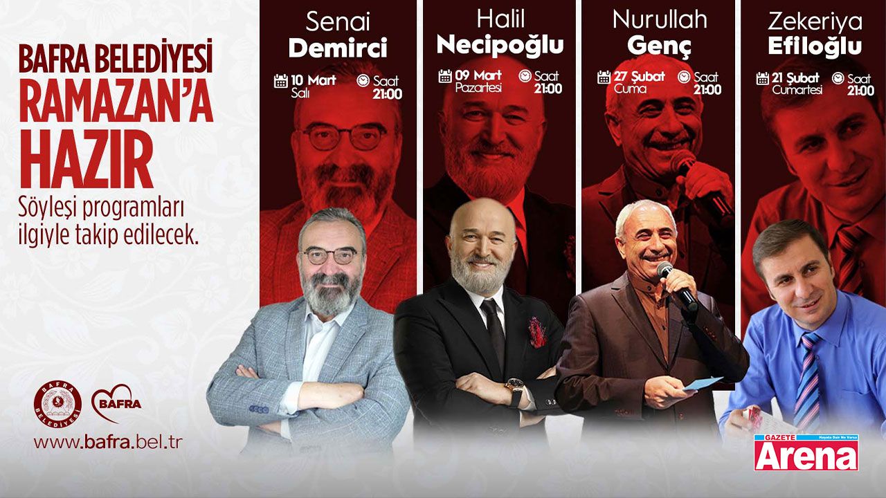 Ramazan ayının manevi iklimine uygun içeriklerle planlanan etkinlikler arasında özellikle söyleşi programları öne çıkıyor. Alanında tanınan ve ilgiyle takip edilen isimler, Ramazan boyunca Bafralılarla bir araya gelerek önemli konuları ele alacak.