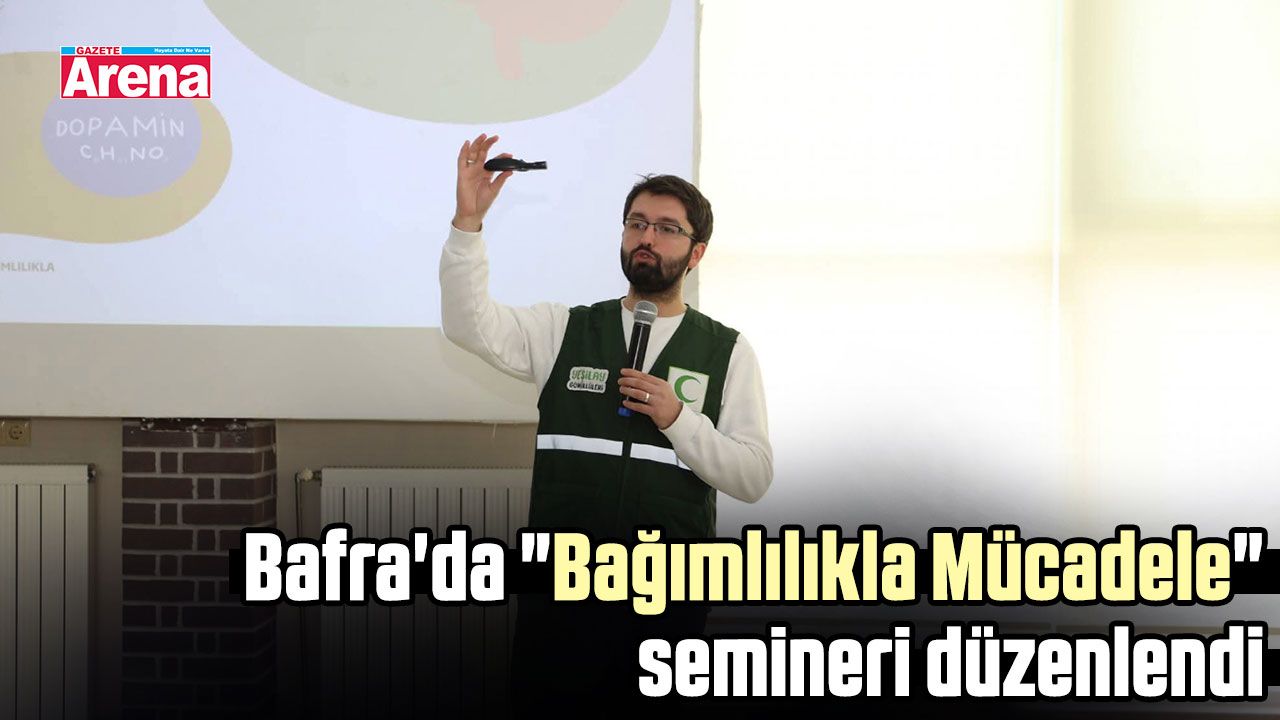 Samsun'un Bafra ilçesinde, AK Parti Bafra Kadın Kolları Başkanlığı tarafından gerçekleştirilen "Bağımlılıkla Mücadele" semineri düzenlendi. Bafra Belediyesi Alparslan Türkeş Parkı Sosyal Tesisleri'nde gerçekleşen programa, Bafra Belediye Başkanı Hamit Kılıç, AK Parti Bafra İlçe Başkanı İbrahim Semiz, İlçe Sağlık Müdürü Dr. Hamiyet Çaylı, Bafra Devlet Hastanesi Başhekimi Uzm. Dr. Alaiddin Domaç, AK Parti Bafra Kadın Kolları Başkanı Nazife Soruklu ve Yeşilay Samsun Şube Başkanı Emre Güneş katılım sağladı.