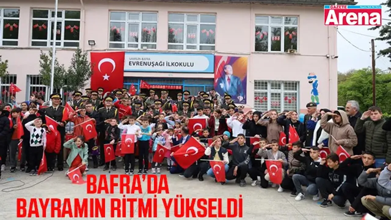 Samsun'un Bafra ilçesi Evrenuşağı İlkokulu bahçesinde düzenlenen etkinlikte Samsun Sahra Sıhhiye Okulu ve Eğitim Merkezi Bölge Bando Komutanlığı, marşlar ve ezgilerle öğrencilere unutulmaz anlar yaşattı. Öğrenciler, bayramın coşkusunu müzikle doyasıya yaşarken, etkinlik okulun sınırlarını aşarak başka öğrencileri de kapsadı.