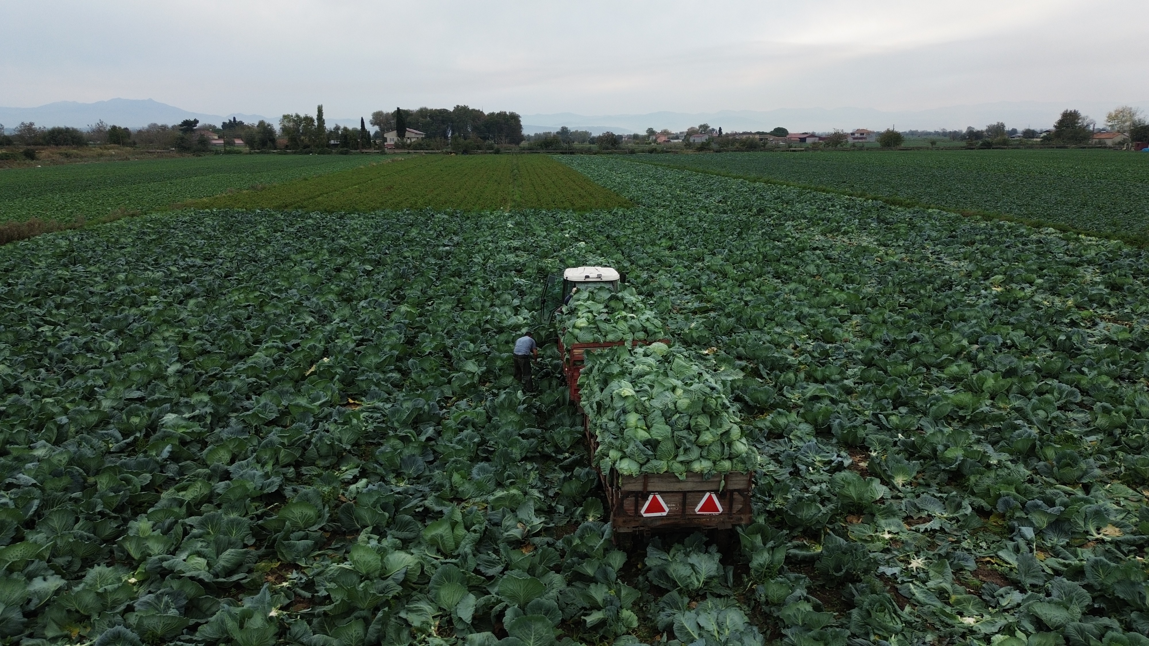 Beyaz lahananın mayıs ayı sonlarında ekildiğine işaret eden Tosuner, "Hasada başladık. Şu anda hava sıcak gittiğinden verim az ama hava soğudukça tonaj yükselir." diye konuştu.