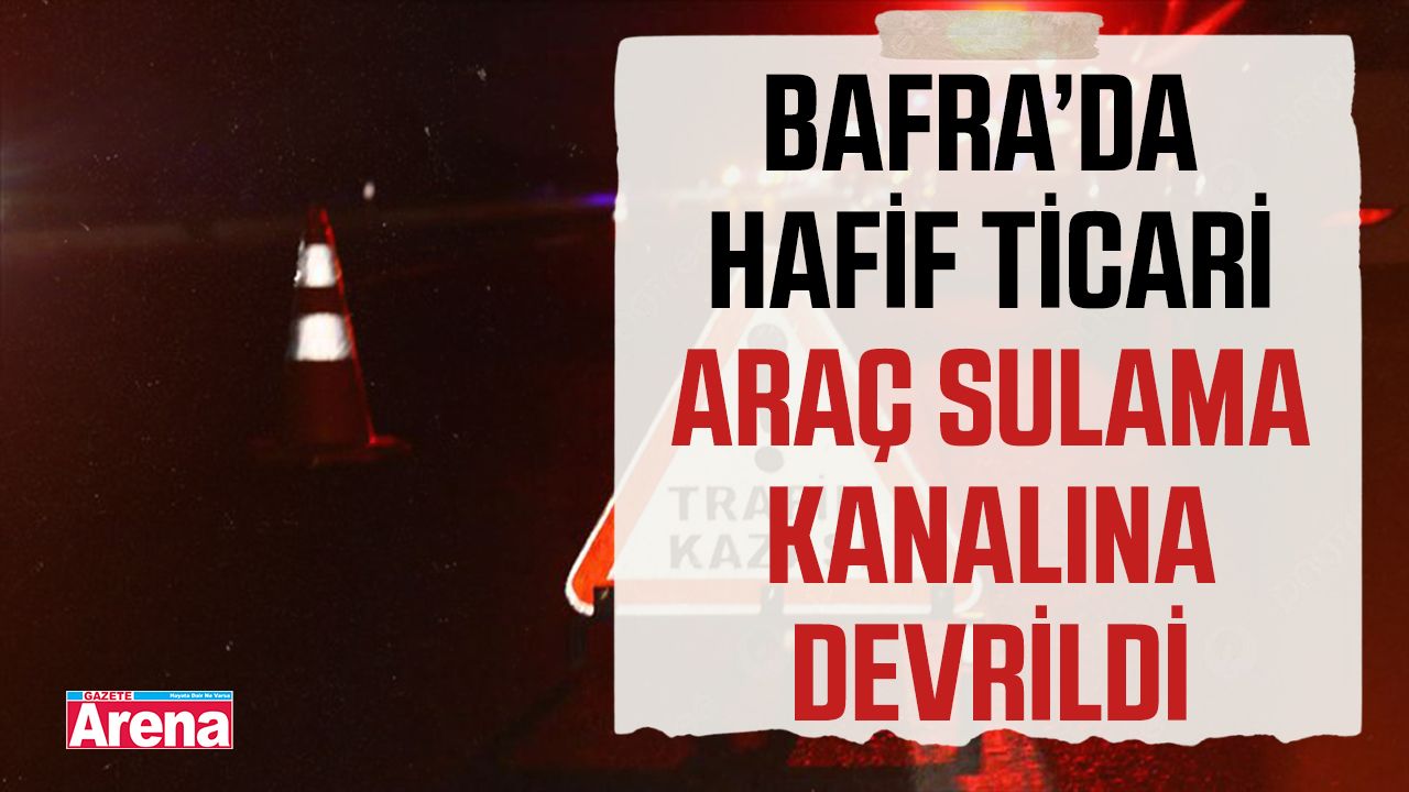 62 yaşındaki S.T. yönetimindeki 55 ABG 163 plakalı hafif ticari araç, Bafra ilçesi Karpuzlu Mahallesi’nde sürücüsünün direksiyon hakimiyetini kaybetmesi sonucu sulama kanalına devrildi. Kazanın ardından çevredekilerin ihbarı üzerine olay yerine jandarma ve sağlık ekipleri sevk edildi.