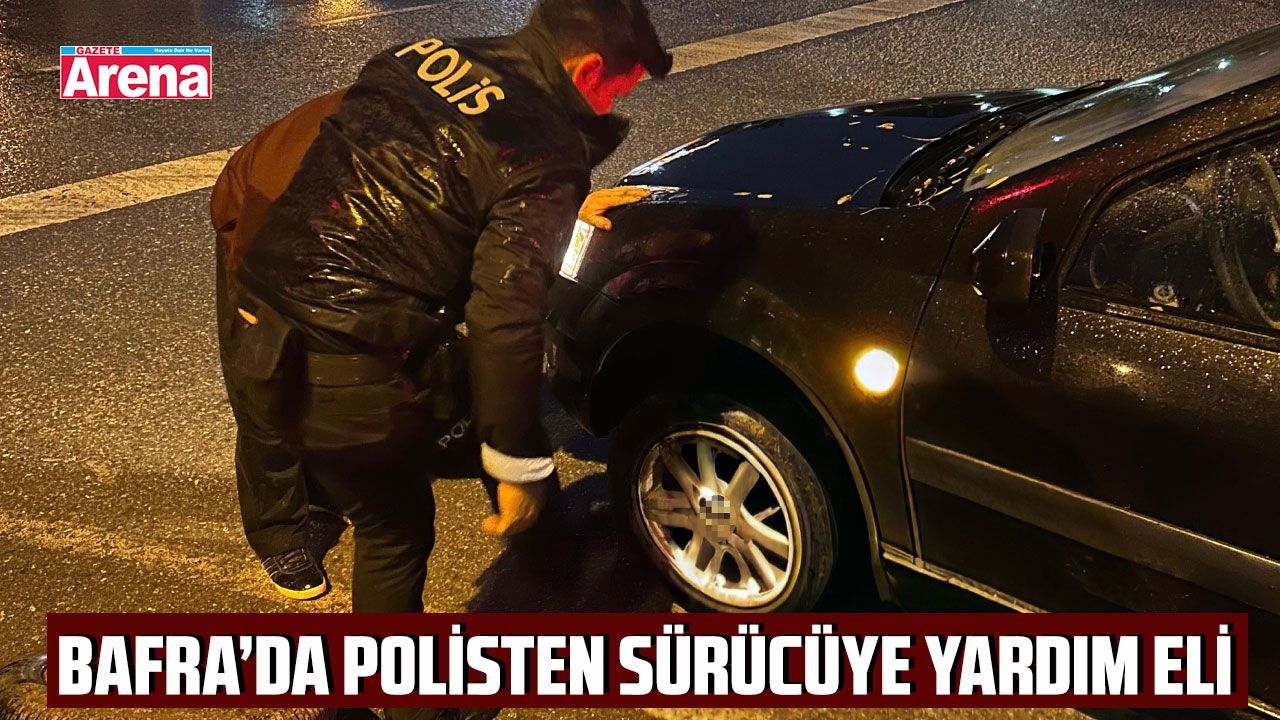Samsun’un Bafra ilçesinde lastiği patlayan yaşlı sürücüye devriye görevindeki polis ekipleri yardım etti.