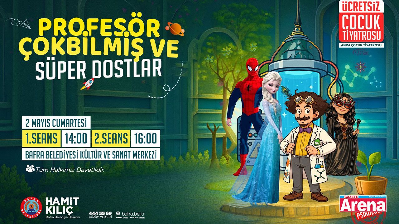 Bafra Belediyesi, düzenli olarak gerçekleştirdiği çocuk tiyatrosu etkinlikleriyle minik tiyatro severleri sanatın renkli dünyasıyla buluşturmaya devam ediyor. Kültür, Sanat ve Sosyal İşler Müdürlüğü bünyesinde organize edilen, Tolga Senem’in kaleme aldığı “Profesör Çokbilmiş ve Süper Dostlar” adlı çocuk tiyatrosu Bafralı çocuklarla buluşacak.