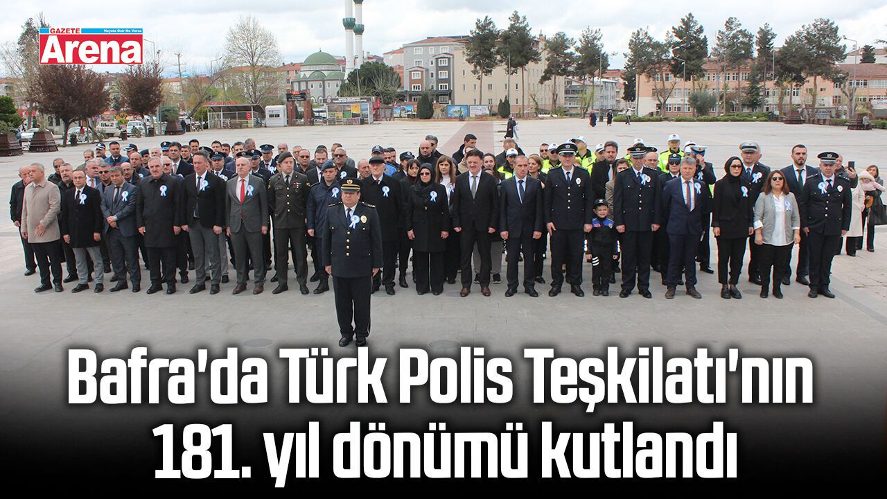 Türk Polis Teşkilatı'nın kuruluşunun 181. yıl dönümü, Samsun'un Bafra ilçesinde düzenlenen törenle kutlandı. 15 Temmuz Demokrasi Meydanı'nda gerçekleştirilen törende, Bafra İlçe Emniyet Müdürü Murat Öner tarafından Atatürk Anıtı'na çelenk sunuldu. Törene İlçe Jandarma Komutanı Jandarma Üsteğmen Benal Kurt, İlçe Milli Eğitim Müdürü Mehmet Değermenci, İlçe Tarım ve Orman Müdürü Mehmet Güreş, Bafra Müftüsü İbrahim Memiş, İlçe Nüfus Müdürü Müslim Aktaş ile polis teşkilatı mensupları katıldı.