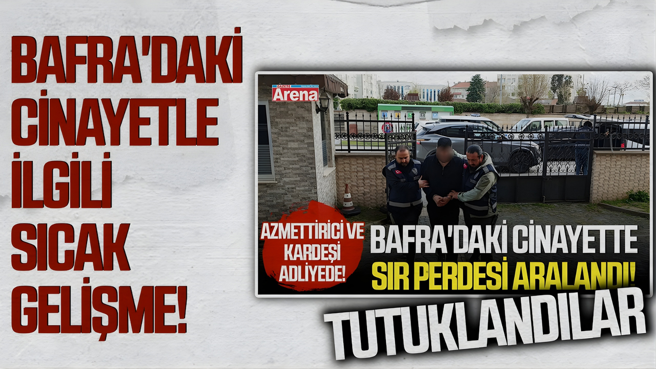 Cinayeti azmettirdiği tespit edilen ve hakkında kesinleşmiş hapis cezası bulunan Mustafa Y. (36) ile olayla bağlantılı olduğu belirlenen kardeşi Mesut Y. (34), savcılık ifadelerinin ardından tutuklanma talebiyle mahkemeye sevk edildi. Çıkarıldıkları mahkemece tutuklanan iki kardeş, Bafra T Tipi Kapalı Cezaevi’ne gönderildi.