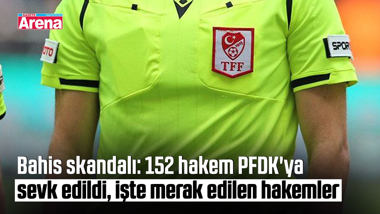 Türkiye Futbol Federasyonu (TFF), futbol müsabakalarına bahis oynadığı tespit edilen 152 hakemi Profesyonel Futbol Disiplin Kurulu’na (PFDK) sevk etti. Yapılan açıklamada, hakemlerin Futbol Disiplin Talimatı’nın 57. maddesi uyarınca tedbirli olarak PFDK’ya gönderildiği belirtildi. Listede üst klasman ve klasman hakemlerinin yanı sıra yardımcı hakemler de yer alıyor.