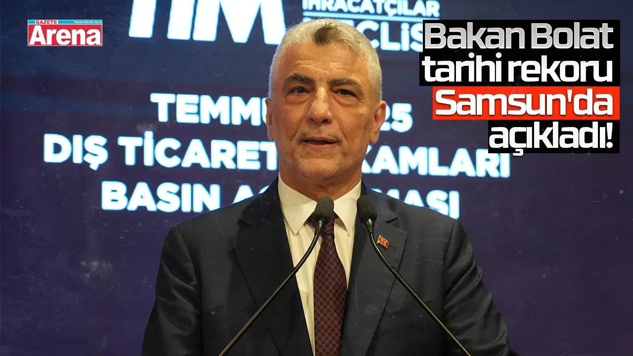 Ticaret Bakanı Ömer Bolat, Samsun’da temmuz ayı dış ticaret verilerini kamuoyuyla paylaştı. Bolat, “Tarihimizin en yüksek aylık mal ihracat rekorunu temmuzda kırdık. Temmuz itibarıyla son bir yıllık toplamda tarihimizin en yüksek mal ihracat rakamına ulaştık” dedi.