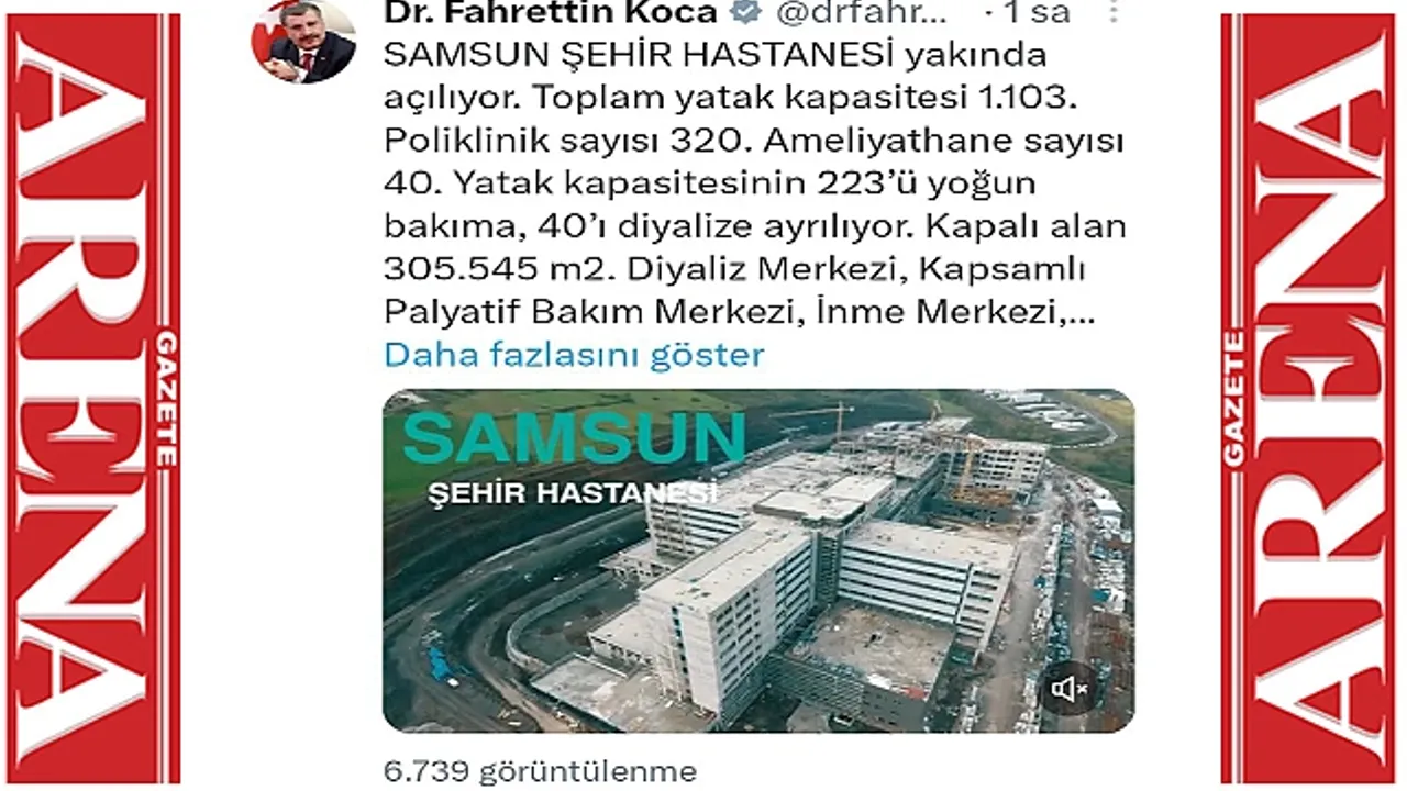 Bakan Koca, Samsun ve şehir hastanesini tanıtan video da paylaştı.