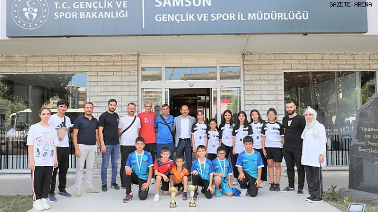 Başarıyla geri dönen takımların antrenörleri ve sporcuları Samsun Gençlik ve Spor İl Müdürü Feyzullah Dereci’yi ziyaret ettiler. Takımları tebrik eden İl Müdürü Feyzullah Dereci, başarılarının devamını diledi.