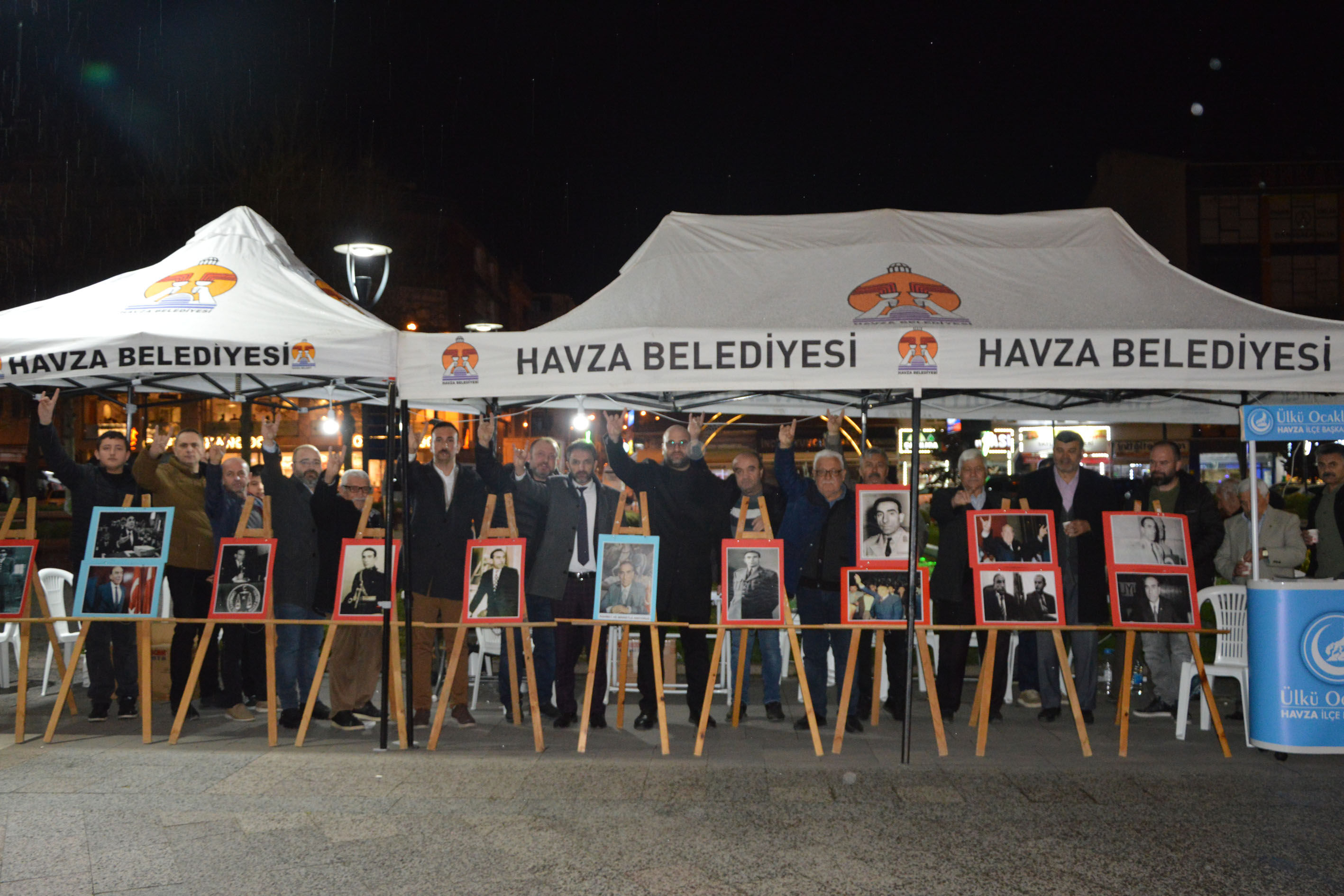 Ülkü Ocakları Eğitim ve Kültür Vakfı Havza İlçe Başkanlığı tarafından anma etkinlikleri kapsamında Kevser Cami önünde Alparslan Türkeş'in fotoğraflarının sergilendiği bir fotoğraf sergisi açıldı.