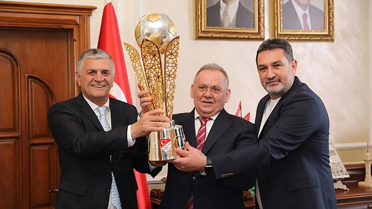 Şampiyonluk kupasını getiren Yılport Samsunspor yöneticileri, Başkan Demir'e vermiş olduğu desteklerden dolayı teşekkür etti.