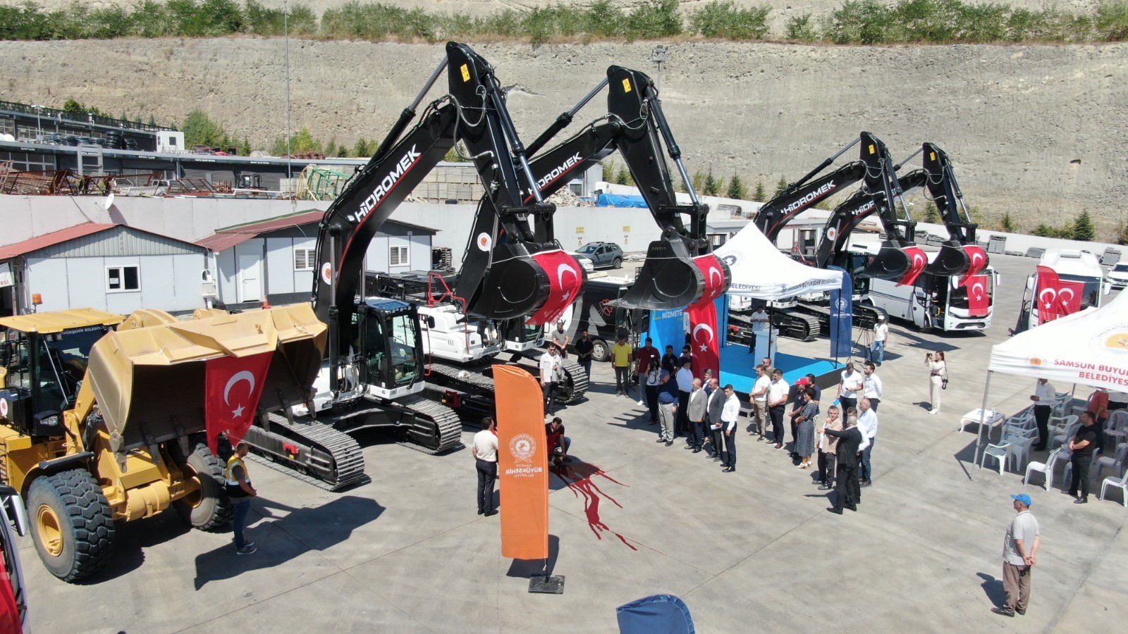 Törende konuşma yapan Başkan Demir, 174’ü kamyon, 34’ü ekskavatör, 21’i yükleyici, 20’si kepçe ve 22’si beton mikseri olmak üzere sadece yol işlerindeki araç sayısının 427’ye ulaştığını belirterek, “Bu şehir çalışkan insanların olduğu bir şehir. En vizyoner, öncü ve örnek şehir olma noktasında çok büyük mesafe kat ettik. Herkese örnek olacak bir yapıya kavuştuk. Samsun çok cazip bir noktaya geldi. Önümüzdeki 30 yıl sanayide, istihdamda, altyapıda, turizmde bambaşka bir yere gelecek. Bu iş makineleri bize yetmeyecek hale gelecek. Nasip olursa önümüzdeki dönem yine bir çalışmayı başlatacağız. Kiralar çok yüksek. Aracın 3-4 aylık kirası, satın alma bedeli ile aynı. Biz araçları kendimiz alarak 5 kat verimlilik sağladık. Türkiye yüzyılı başladı, siz bu konuda öncü olacaksınız. 2’inci yüzyılın öncülerisiniz. Çalışmaya devam. Emeği geçen herkese çok teşekkür ediyorum. Muhteşem bir birliktelikle bu şehre hizmeti sürdürüyoruz. Samsunlu hemşerilerime hizmette sınır yok. Bu şehir her şeyin en iyisine layık. Bizde onu yapmakla mükellefiz. Saathane Meydanı’nı, Şehir Kütüphanesi'ni düşünün, Subaşı Meydanı’nı düşünün. Her projemizde önceliğimiz kalite. Bu güzel şehrin 950 mahallesinin altyapısını bitirdik. Sizlerle biz harikalar oluşturduk” dedi.