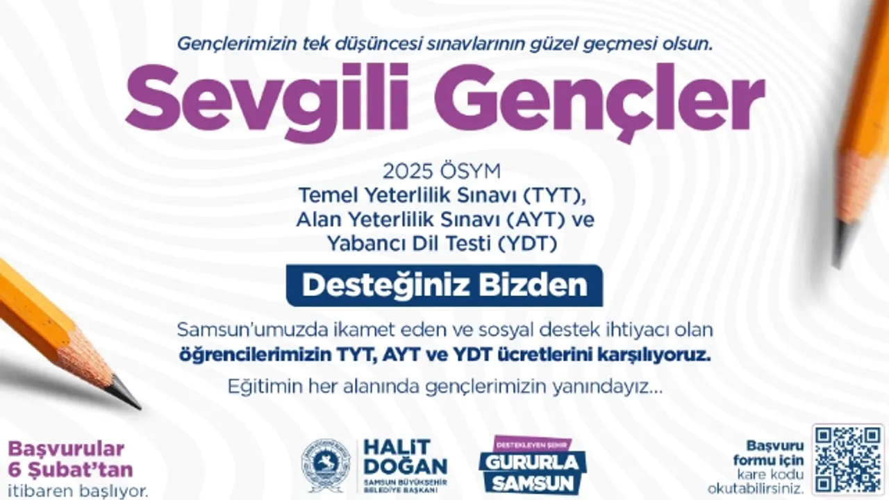 Samsun Büyükşehir Belediyesi, her alanında gençlerin yanında olmaya ve öğrencilerin eğitim hayatlarında daha güçlü bir şekilde ilerlemelerine destek olmak için çalışmaya devam ediyor. Bu kapsamda Samsun’da ikamet eden ve üniversite sınavına girecek olan öğrencilerin gerekli şartları taşıması koşuluyla 2025 yılı Temel Yeterlilik, Alan Yeterlilik ve Yabancı Dil sınav ücretlerini Samsun Büyükşehir Belediyesi karşılayacak. Öğrenciler başvurularını 6 Şubat itibariyle sinavucreti.samsun.bel.tr adresinden yapabilecekler. Başvurular, Sosyal Hizmetler İl Müdürlüğü’ne iletilecek ve buradan yapılacak değerlendirme ile başvuru sahiplerinin mal varlığı durumu kontrol edilecek. İhtiyaç sahibi olduğu belirlenen öğrencilerin sınav ücretleri, Samsun Büyükşehir Belediyesi tarafından karşılanacak.
