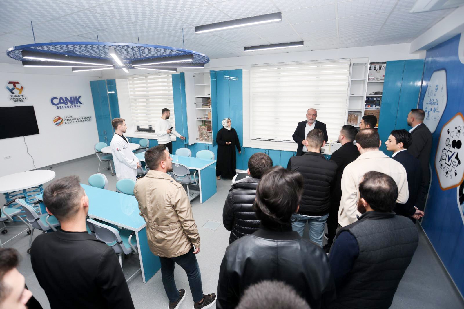 Genç Müstakil Sanayici İş Adamları Derneği Samsun Şubesi Yönetim Kurulu Başkanı Hasan Can Liva ve yönetim kurulu üyelerini Canik Özdemir Bayraktar Keşif Kampüsü'nde misafir eden Başkan İbrahim Sandıkçı, kampüste yer alan derslikler, atölyeler ve keşif alanları hakkında bilgiler verdi.