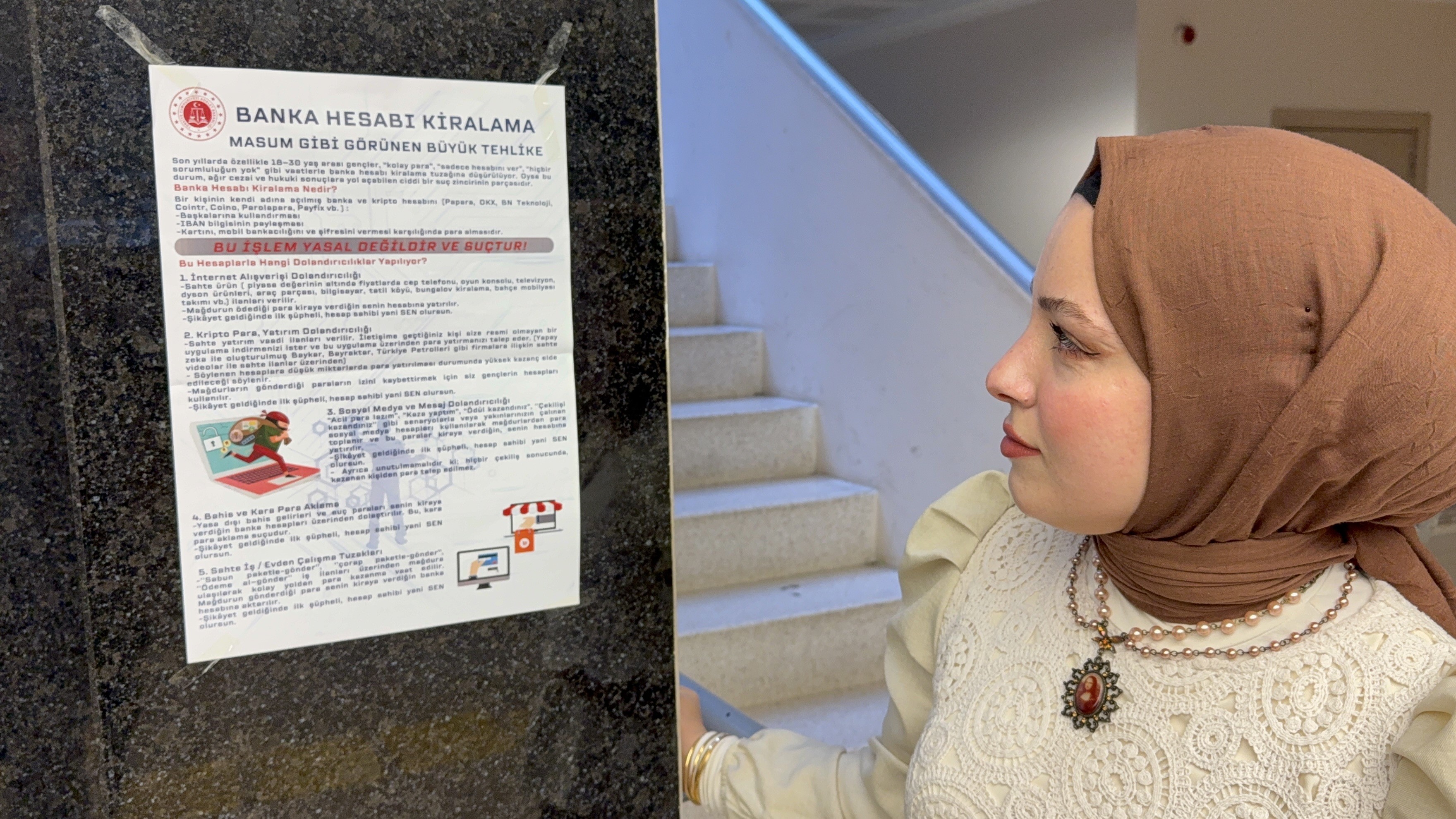 Öte yandan, IBAN kiralama ve bilişim suçlarına karşı farkındalık oluşturmak amacıyla Samsun Ondokuz Mayıs Üniversitesi, Samsun Üniversitesi ve Samsun Milli Eğitim Müdürlüğü ile koordineli şekilde broşür dağıtımı ve bilgilendirme çalışmaları yapılmasının planlandığı öğrenildi. Oluşturulan broşürler adliye binasının belirli noktalara da vatandaşları uyarmak için asıldı.
