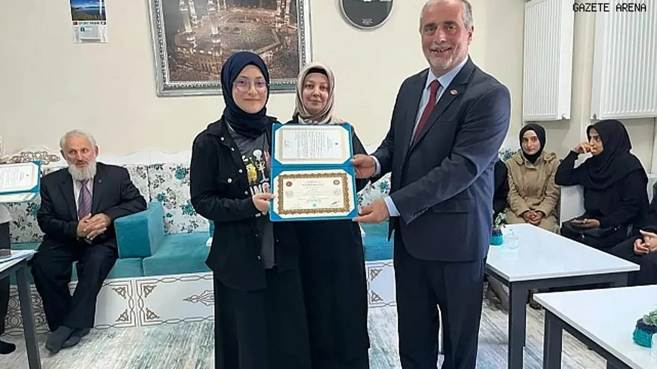 Hafızlık belgesi almaya hak kazanan hafızlara belgeleri İl Müftüsü Abdurrahman Şahin, İl Müftü Yardımcıları Abdullah Aksoy ve Fatma Tuba Altın tarafından takdim edildi.