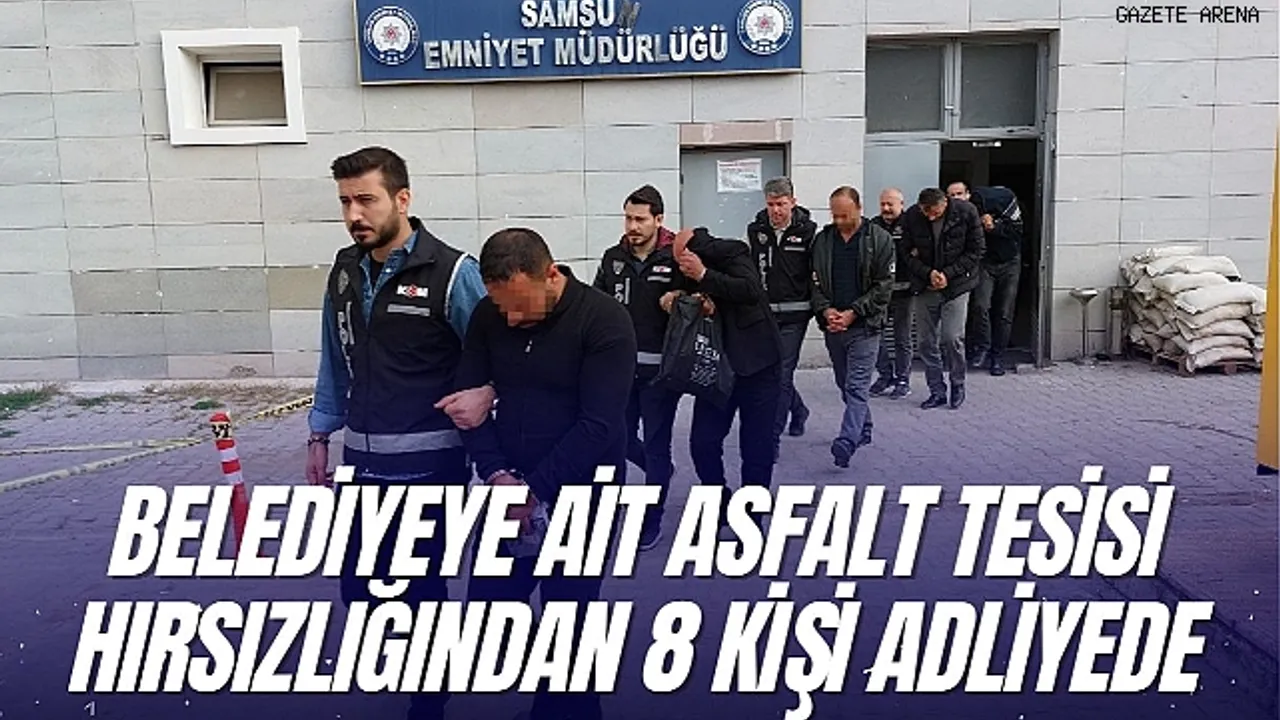 KOM polisi tarafından yapılan araştırmalarda 'nitelikli hırsızlık ve zimmet soruşturması' kapsamında Samsun Büyükşehir Belediyesi Adalar Asfalt Plenti Tesisi'nden 25 ton bitüm malzemesi, 8 metreküp çakılı çalan, belediyeye ait şirkette çalışan 4 kişi malzemelerle birlikte suçüstü yakalandı. Malzemelerin çalınmasını organize eden 2 şahsın da aralarında bulunduğu toplam 9 kişi gözaltına alındı. Gözaltına alınanların araçlarda ve ikametlerde yapılan aramalarda 360 bin TL para, 3 adet ruhsatsız tabanca, 24 adet tabanca fişeği, 16 adet sentetik ecza ve 1 gram metamfetamin ele geçirildi.