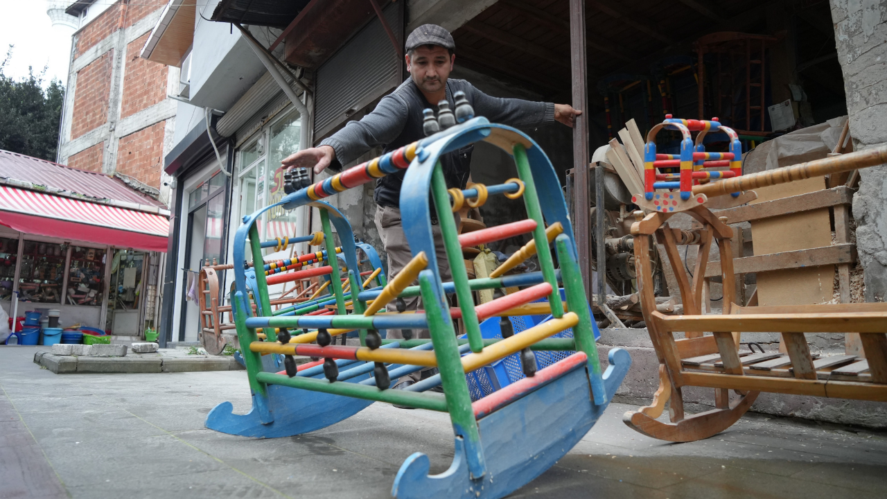 "Mesleğim dede mesleğidir. 1947 yılından beri dedem bu mesleği yapmış, akabinde pandemi dönemine kadar babam yaptı. Babamdan da ben devraldım. Eskiden karyola tipi beşik yokken, köylüsü, şehirlisi çocuğu doğduğu zaman bu dükkana gelerek beşik alıp, çocuğunu bu beşikte büyütüyormuş. Şimdi başka alternatifler çıktı. Ahşap beşiğe rağbet var ama eskisi kadar yok. Bazı çocuklar karyola tipi beşikte yatmıyor. Aileler çare arıyor. Bu beşiği öneri üzerine alıyorlar. Çocuklarının rahat ettiklerini söylüyorlar. Kimisi babasından, dedesinde gördüklerini yapmak istiyor. ‘Bizler bunlarda büyüdük, çocuğumu da bu beşikte büyütmek istiyorum' diyorlar. Bu beşik el tornalarında çekiliyordu şimdi dinomolu tornalar var. Bir insan günde bir tane beşik yapabilir. Bunun kesme aşaması, kerestesini temin etme, kurutulma aşamaları var.