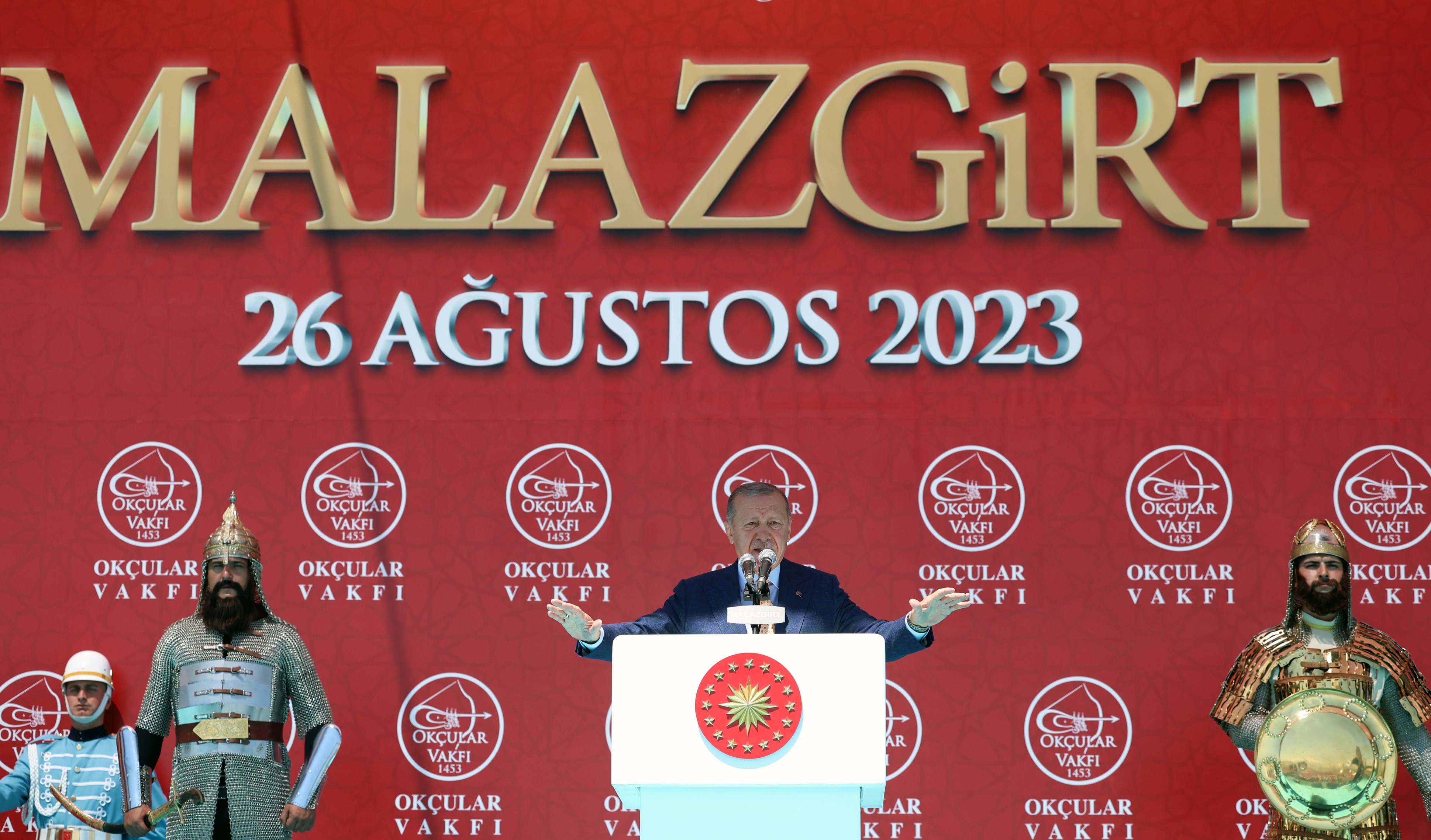 Cumhurbaşkanı Erdoğan, Malazgirt Zaferi’nin 952. Yılı etkinlikleri çerçevesinde Muş’un Malazgirt ilçesinde düzenlenen kutlama etkinliklerine katıldı. Burada toplanan kalabalığa hitap eden Erdoğan, “Bugün Malazgirt Zaferi’nin 952. yıl dönümü dolayısıyla şu mübarek topraklarda tekrar bir aradayız. Anadolu’yu bizlere vatan haline getiren tüm şehitlerimizi, gazilerimizi, gönül sultanlarımız rahmetle anıyorum. Sultan Alpaslan’ın ve ordusundaki her bir neferin bizlere emaneti olan bu toprakları kanımızın son damlasına kadar korumu azim ve kararlılığını buradan bir kez daha ilah ediyorum. Şu hakikat asla unutulmamalıdır ki Malazgirt öyle sıradan bir savaş, sıradan bir zafer değildir. Biz Anadolu’ya Malazgirt ile ayak basmadık. Çok daha öncesinden beri zaten buradaydık. Malazgirt Anadolu’daki siyasi hükümdarlığımızın kapılarını açmıştır. Burada kazanılan zafer önce Anadolu Selçuklu Devleti'nin kuruluşunu sağlayarak Haçlı akınlarına en büyük darbeyi vurmuştur. Ardından aynı inançla bayrağını yükselten Osmanlı'nın başarılı mücadeleleriyle Balkanların ve İstanbul'un fethine vesile olmuştur. Bir başka ifadeyle Malazgirt; İznik’in, Konya'nın da, Bursa'nın da, Edirne'nin de, İstanbul'un da büyük kardeşidir. Bizi, Viyana önlerine götüren zaferler zincirinin çıkış noktası işte burasıdır. Malazgirtli vatandaşlarım böyle bir mirasa sahip oldukları için ne kadar şükretseler, ne kadar gururlansalar azdır. Her ilimizin, her ilçemizin bizim kalbimizdeki yeri elbette ayrıdır. Ama Malazgirt sahip olduğu bu manevi mirasla kalbimizde hepsinden ayrı bir konuma sahiptir” dedi.