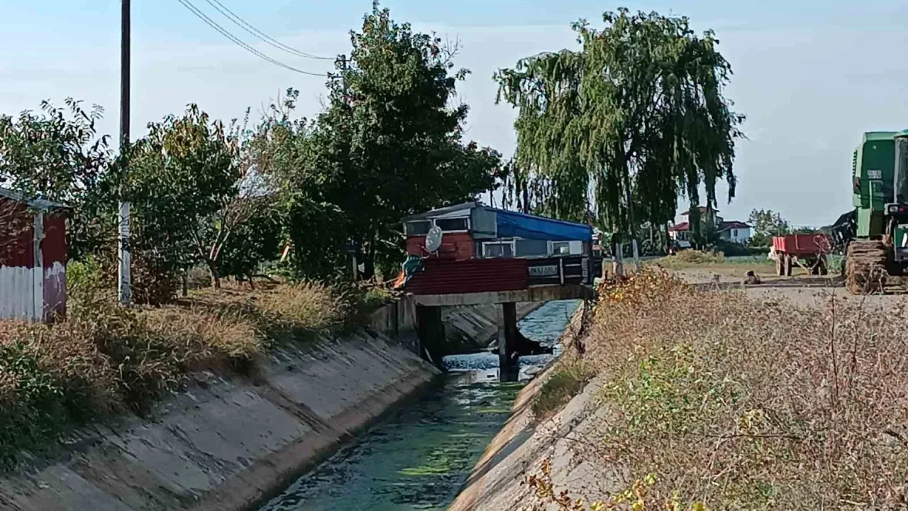 Samsun'da sulama kanalının üzerinde bulunan bir baraka, dikkat çekiyor.