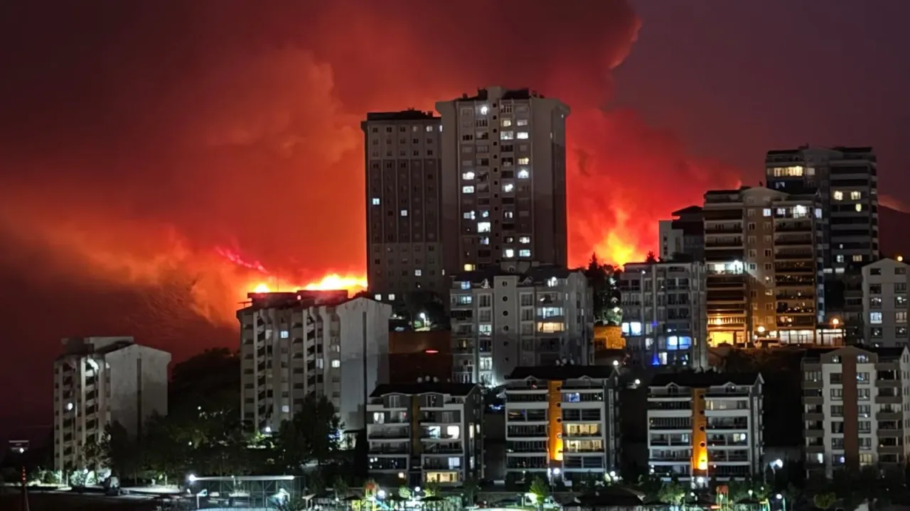 Alevlerin TOKİ bölgesine hızla ilerlediği görülürken gecenin karanlığı yangının alevleriyle aydınlandı. Öte yandan alevler şehrin her tarafından fark ediliyor.