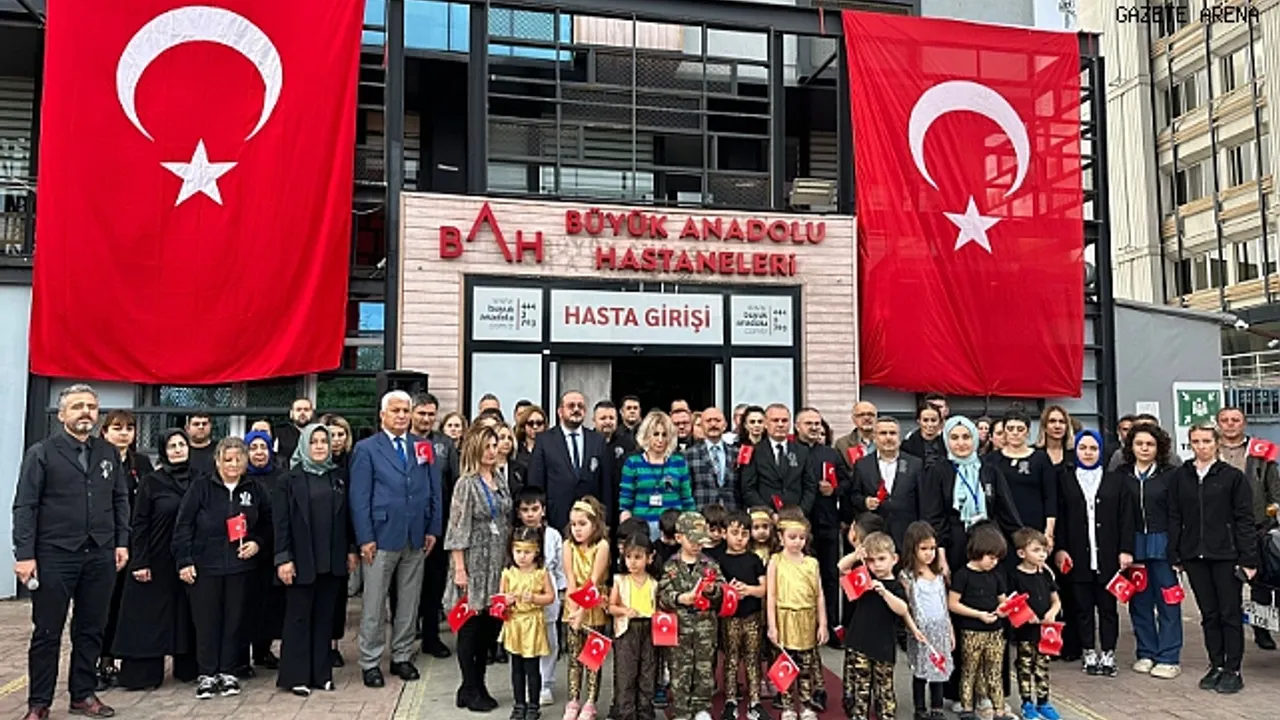 "10 Kasım Atatürk'ü Anma Günü" etkinlikleri kapsamında Büyük Anadolu Meydan Hastanesi girişinde gerçekleşen anma törenine Büyük Anadolu Hastanesi Genel Müdür Yardımcısı Hakan Çiftçi, Hastane Başhekimleri, doktorlar, hemşireler, sağlık çalışanları ve Benim Masalım Kreş öğrencileri katılım gösterdi.