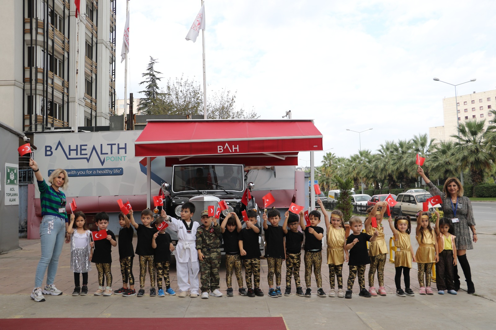 Büyük Anadolu Hastaneleri tarafından düzenlenen program kapsamında ayrıca Gazi Mustafa Kemal Atatürk’ün makam aracı olarak kullandığı aracın benzeri Meydan Hastanesi önünde sergilendi. Otomobile hastane çalışanlarının, vatandaşların ve öğrencilerin ilgisi büyük oldu.