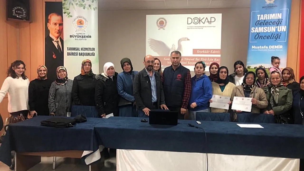 Büyükşehir Belediyesi tarafından kentte tarım ve hayvancılığın gelişmesi için yürütülen çalışmalar hızla devam ediyor. Bu kapsamda çiftçilere çeşitli konularda eğitim desteği de sağlanıyor. Samsun Büyükşehir Belediyesi, Doğu Karadeniz Projesi Bölge Kalkınma İdaresi Başkanlığı (DOKAP) işbirliği ile yürüttüğü ‘Yöresel Tat Tirit İçin Kaz Yetiştiriciliğini Yaygınlaştırma Projesi’ kapsamında 30 kadın üreticiye 'Kaz Yetiştiriciliği' eğitimi verdi. Büyükşehir Belediyesi Tarımsal Hizmetler Daire Başkanlığı ve DOKAP görevlileri tarafından Havza, Kavak ve Ladik ilçelerinde düzenlenen eğitim çalışmalarında çiftçilere Veteriner Hekim Fatih Cır tarafından kaz yetişticiliği ile ilgili güncel teknikler anlatıldı.