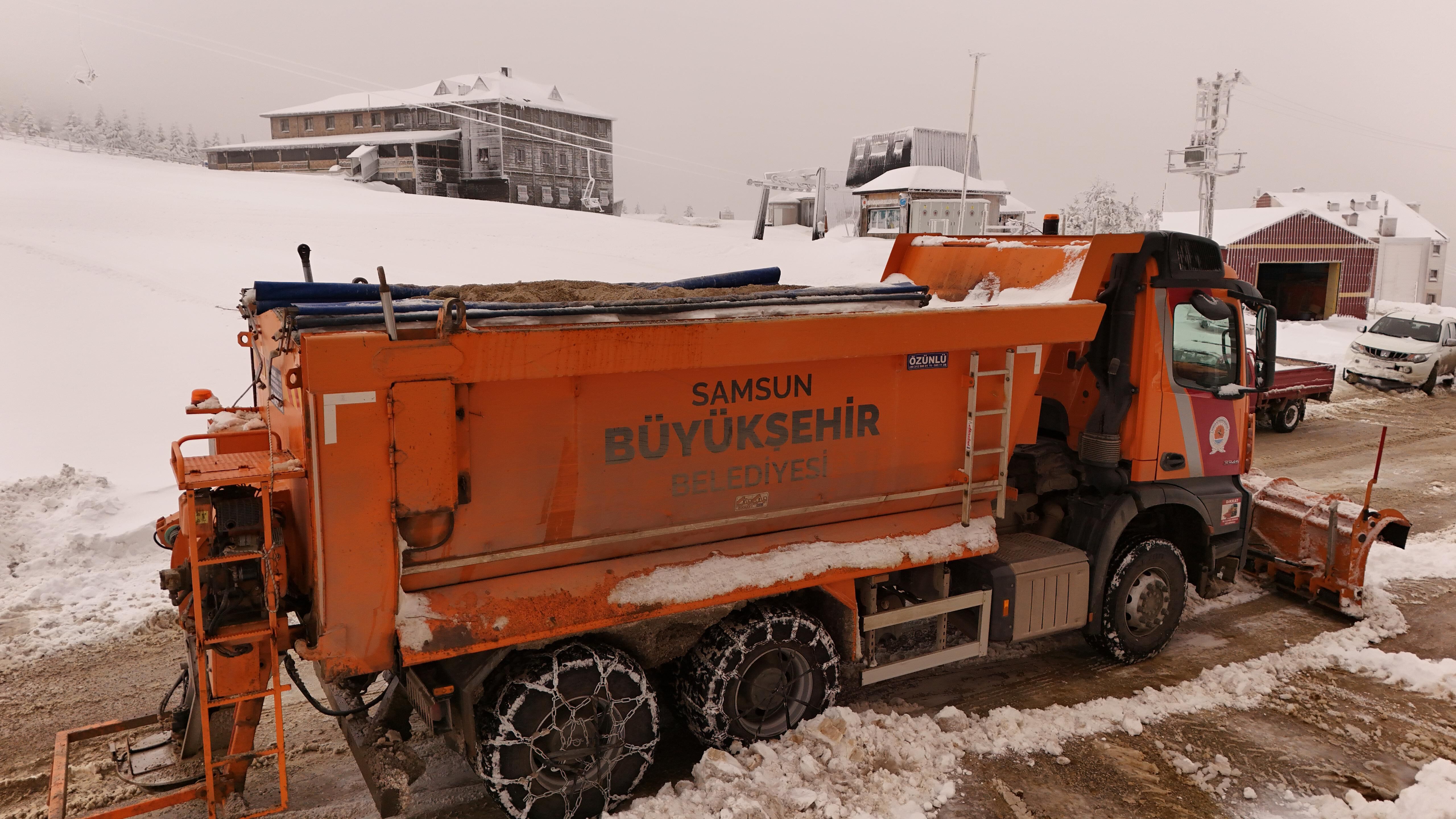 Samsun’a mevsimin ilk karının yağması ile yüksek kesimler beyaza bürünürken Samsun Büyükşehir Belediyesi de vatandaşların olumsuzluk yaşamaması adına teyakkuza geçti. Kış mesaisini 17 ilçede büyük bir titizlikle sürdüren Samsun Büyükşehir Belediyesi, 473 araç ve 705 personeli ile sahada çalışmalarına devam ediyor.