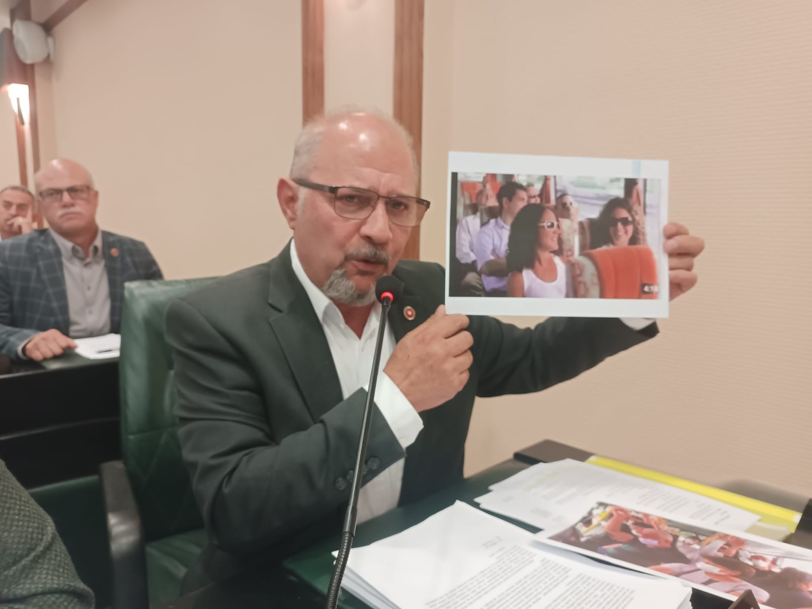 CHP Grup Başkanvekili Atila Tekcan, toplantıya getirdiği resmi göstererek, ayakta yolcu taşıma kararına tepki gösterdi.