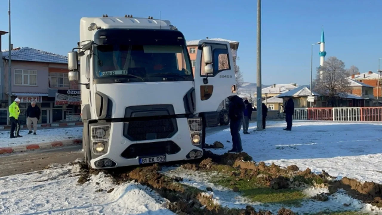 Edinilen bilgiye göre, Havza istikametinden gelen 61 EK 509 plakalı kargo kamyonu, İstasyon Kavşağı’na geldiği sırada gizli buzlanmadan dolayı kayarak kavşağı çarptı.