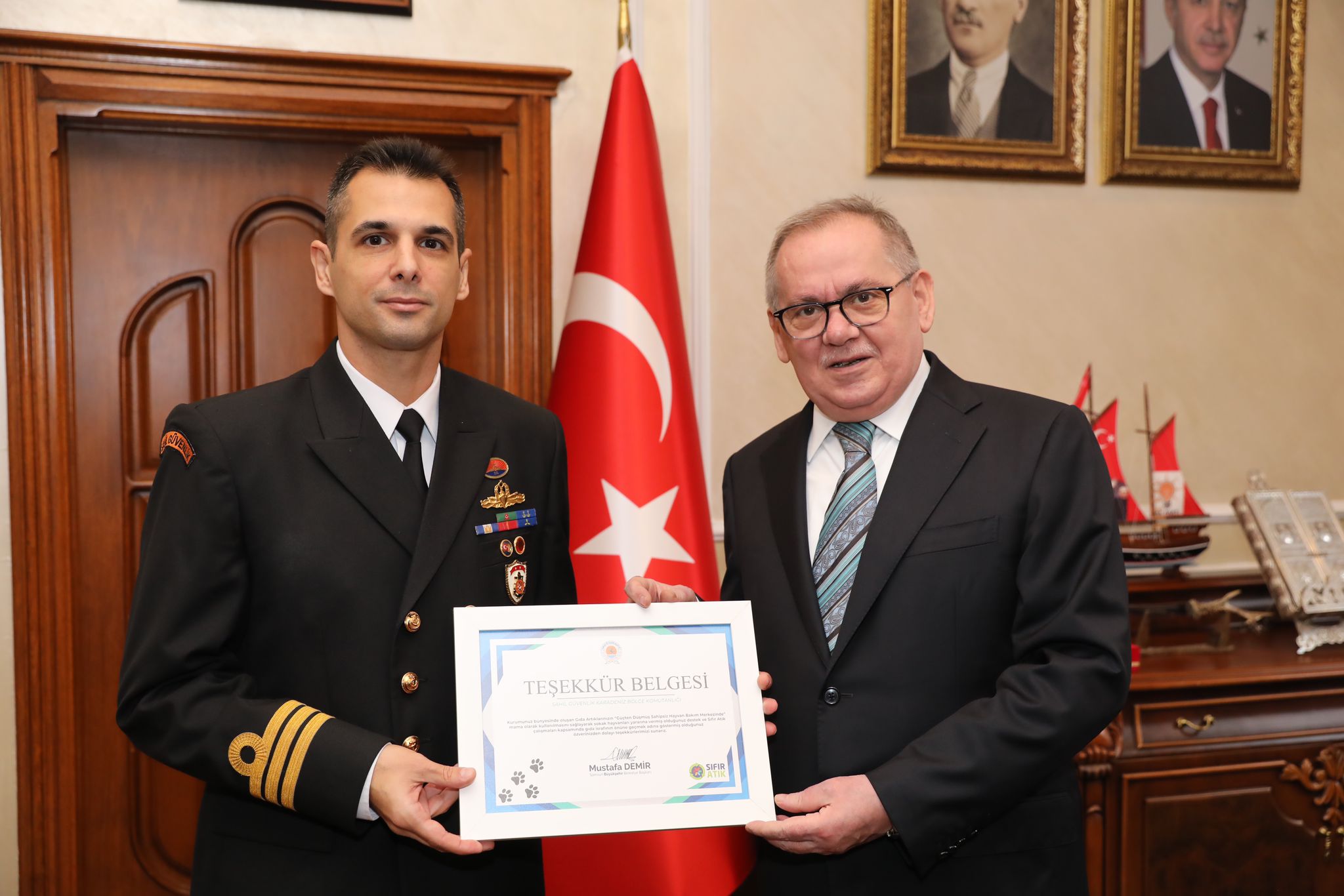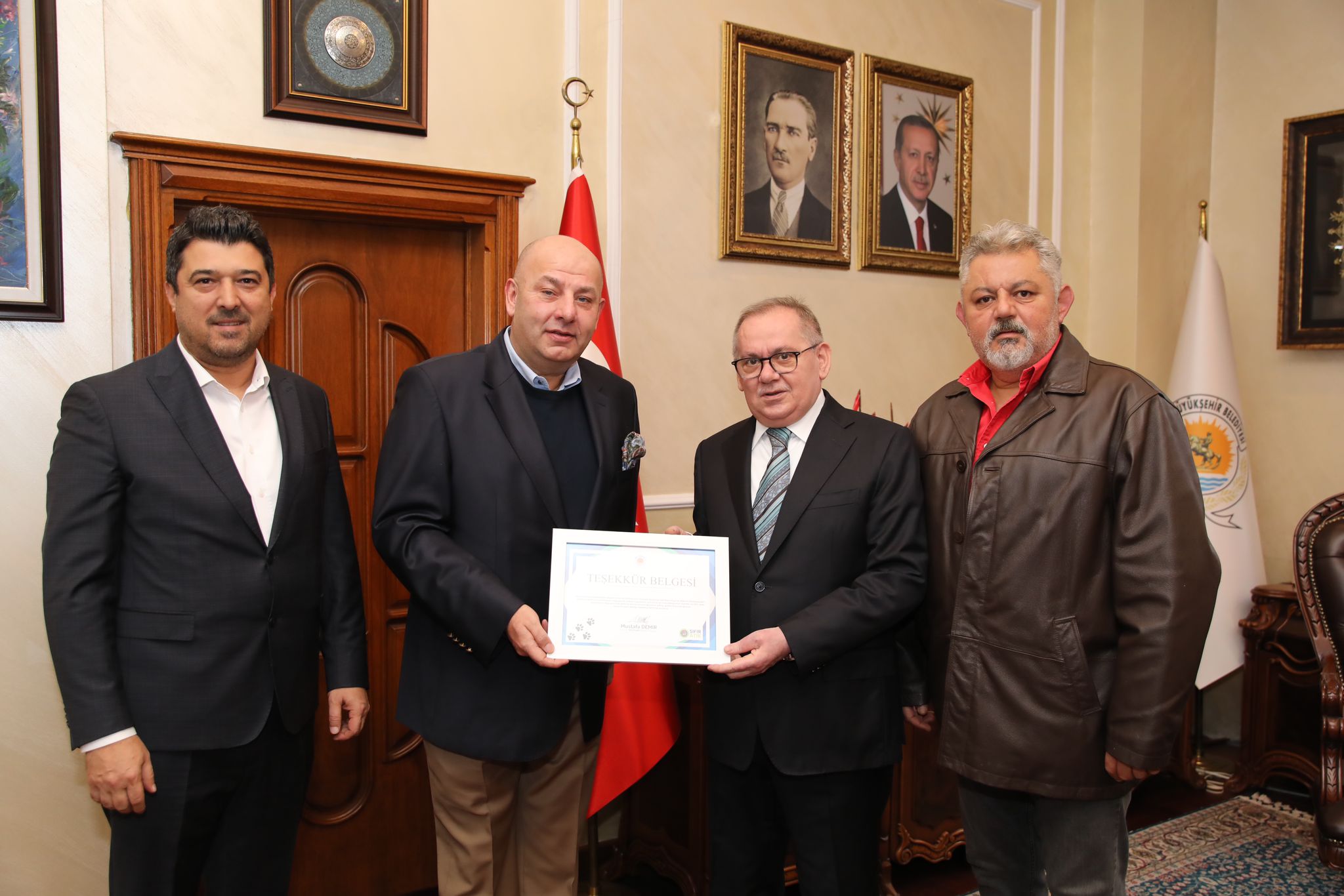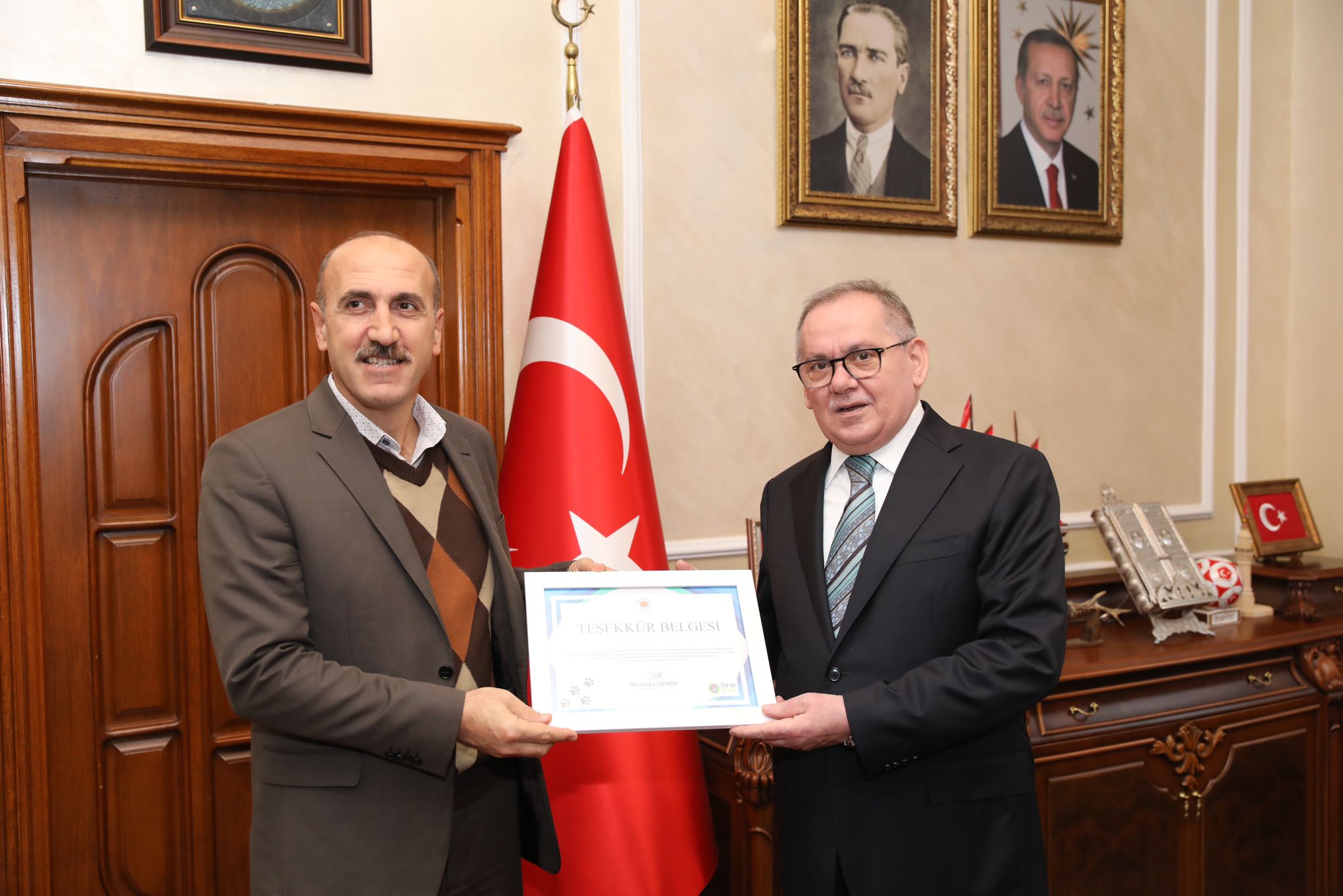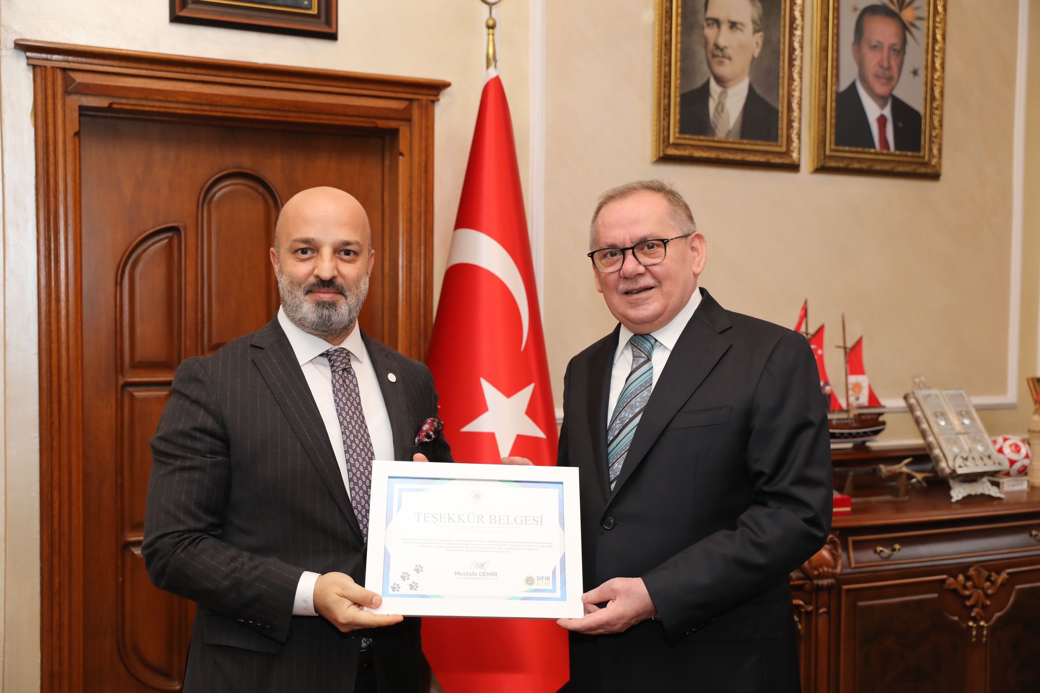 Büyükşehir Belediyesi’nin uygulamasına destek vererek tesislerdeki artan besin maddelerini teslim eden kamu kurum ve kuruluşları ile özel işletmelerin temsilcilerini Büyükşehir Belediye Başkanı Mustafa Demir makamında ağırladı. Başkan Demir, verdikleri destek nedeniyle kurum ve özel işletme temsilcilerine ‘Teşekkür Belgesi’ takdim etti.