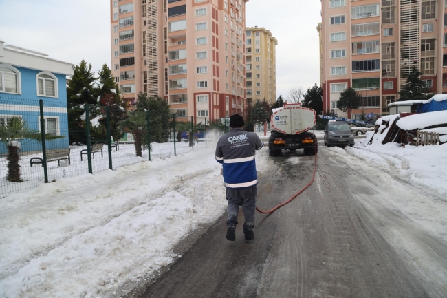 Canik Belediyesi, kar yağışlarının ardından oluşan buzlanmalara karşı önlemlerini aldı. Başkan İbrahim Sandıkçı, ilçedeki ana arterler, ara yollar, okul bahçeleri ve ortak yaşam alanlarında oluşan buzlu alanlara solüsyon uygulama çalışmalarının sürdüğünü belirtti. Bu çalışmalar, özellikle sabah saatlerinde karla mücadele eden vatandaşların güvenliğini sağlamak amacıyla gerçekleştiriliyor.