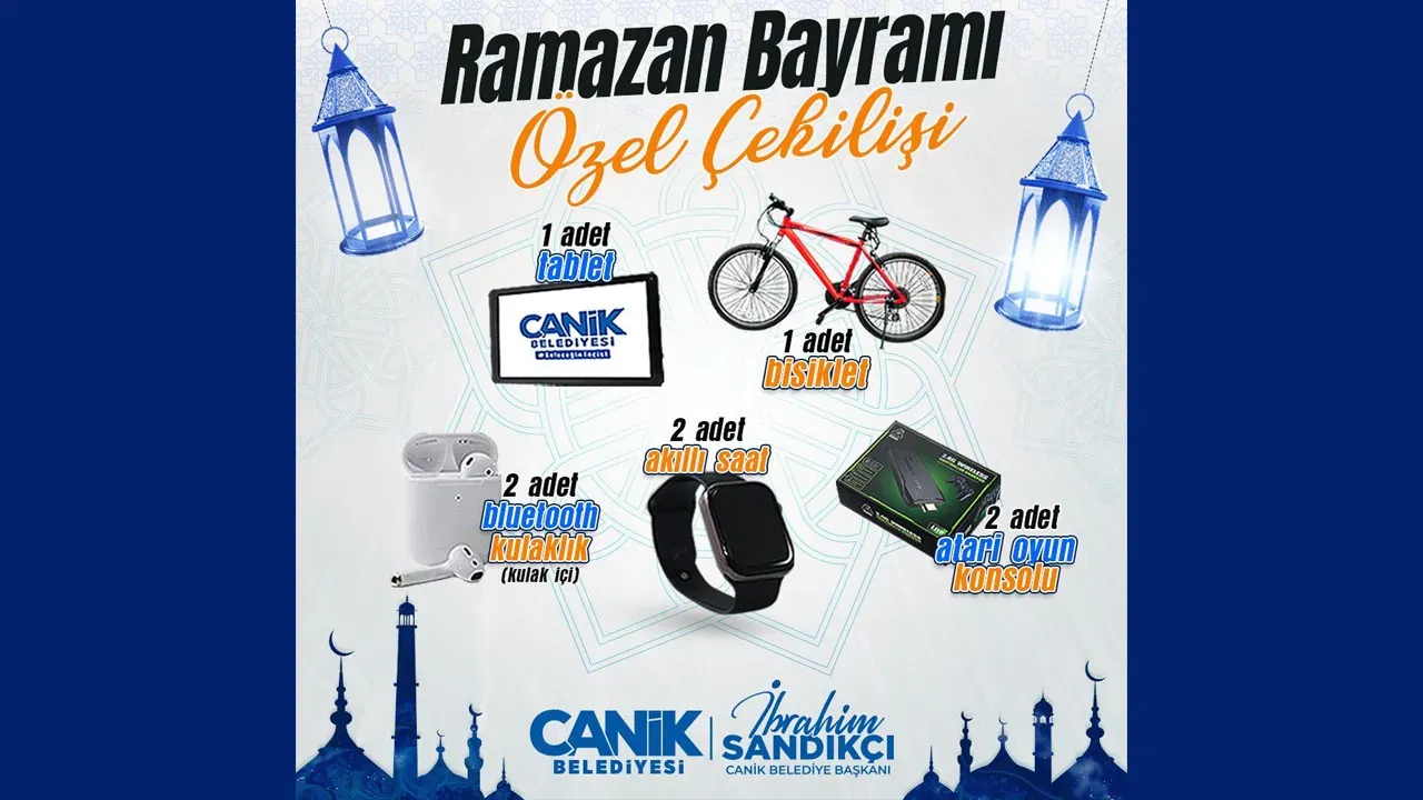 Ramazan Bayramı’nın 3. gününe kadar devam edecek olan çekiliş, Canik Belediyesi tarafından bayram coşkusunu artırmak için düzenlenen bir etkinlik olarak dikkat çekiyor. Vatandaşlar, hediyelerle dolu bu özel çekilişe katılarak bayramlarını daha keyifli hale getirebilecek.