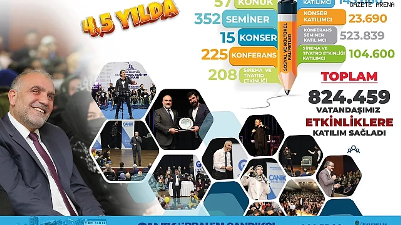Canik Belediye Başkanı İbrahim Sandıkçı’nın kültür ve sanat alanında gerçekleştirdiği çalışmalar, yurt genelinde takdir toplamaya devam ediyor. Başkan İbrahim Sandıkçı’nın göreve geldiği 2019 yılından itibaren kültür ve sanat alanında büyük bir atılım yaşanan ilçede, 4.5 yılda 824 bin 459 vatandaşın katılımıyla 842 farklı kültür ve sanat programı gerçekleşti. Canik Belediyesi, 4.5 yıl içerisinde ilçede düzenlediği 57 konukla özel program, 352 seminer, 15 konser, 225 konferans ve 208 sinema ve tiyatro etkinliğiyle ilçede kültür ve sanat rüzgârı estirdi.