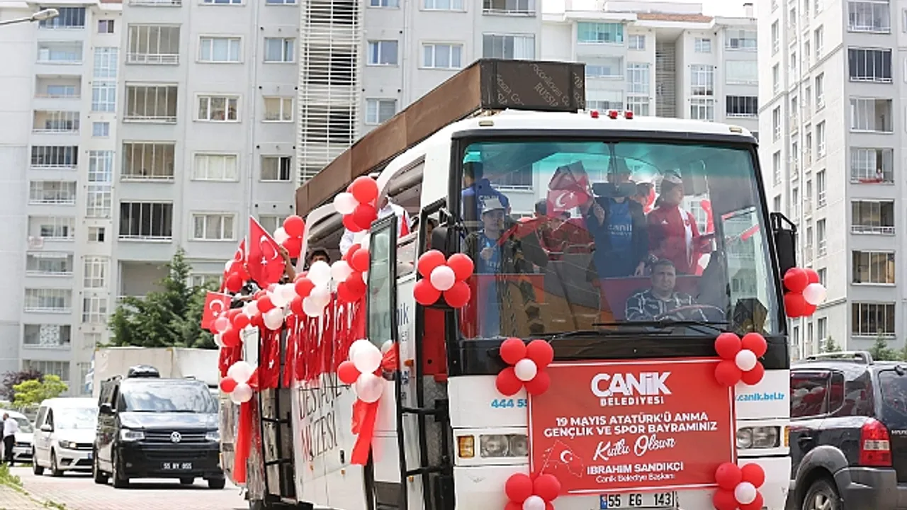 Canik Belediyesi’nin ilçede düzenlediği özel etkinliklerle vatandaşlar ilçenin dört bir köşesinde 19 Mayıs Atatürk’ü Anma, Gençlik ve Spor Bayramı’nın 104. yıl dönümünü coşku ve sevinçle kutladı. İlçede düzenlenen etkinlikler kapsamında Canik Belediye Başkanı İbrahim Sandıkçı, gençler ve milli sporcular ile birlikte üstü açık otobüsle ilçe turu attı. Canik’in tüm mahallelerini otobüsle ziyaret eden Başkan İbrahim Sandıkçı ve gençler, vatandaşlarla birlikte bayram sevincini paylaştı. Başkan İbrahim Sandıkçı, mahallelerde buluştuğu gençlere ve çocuklara bayram hediyesi verdi. Canik Belediyesi tarafından 19 Mayıs Atatürk’ü Anma, Gençlik ve Spor Bayramı kapsamında düzenlenen etkinliklerle Kurtuluş Mücadelesi’nin kahramanları saygı ile anıldı.