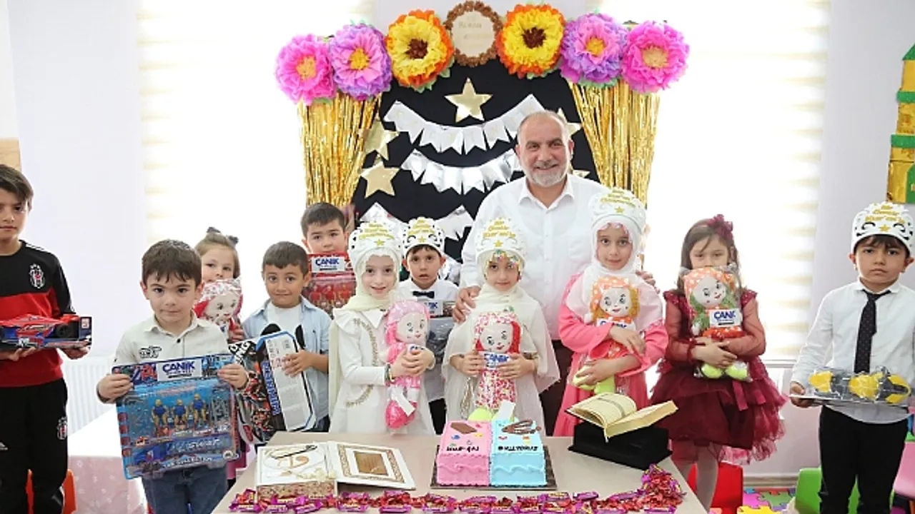 Canik Belediye Başkanı İbrahim Sandıkçı, Canik Belediyesi Şehit Ayşe Aykaç Hanım Konağı ve Hayme Ana Hanım Konağı’nda oluşturulan Sıbyan Sınıfları’nda aldıkları eğitimlerle Kur’an-ı Kerim’e geçiş yapan öğrencilerle ‘Kur’an-ı Kerim’e Geçiş Töreni’nde buluştu. Düzenlenen törende Kur’an-ı Kerim’e geçen öğrencilere belgelerini takdim eden Başkan İbrahim Sandıkçı, onları tebrik etti. Sıbyan Sınıfları’nda eğitim hayatlarına devam eden öğrencilerle yakından ilgilenen Başkan İbrahim Sandıkçı, tüm öğrencilere çeşitli hediyeler verdi. Başkan İbrahim Sandıkçı, öğrencilerin keyifli dakikalarına şahitlik yapan törende öğretmenlere ve ailelere emeklerinden dolayı teşekkür etti.