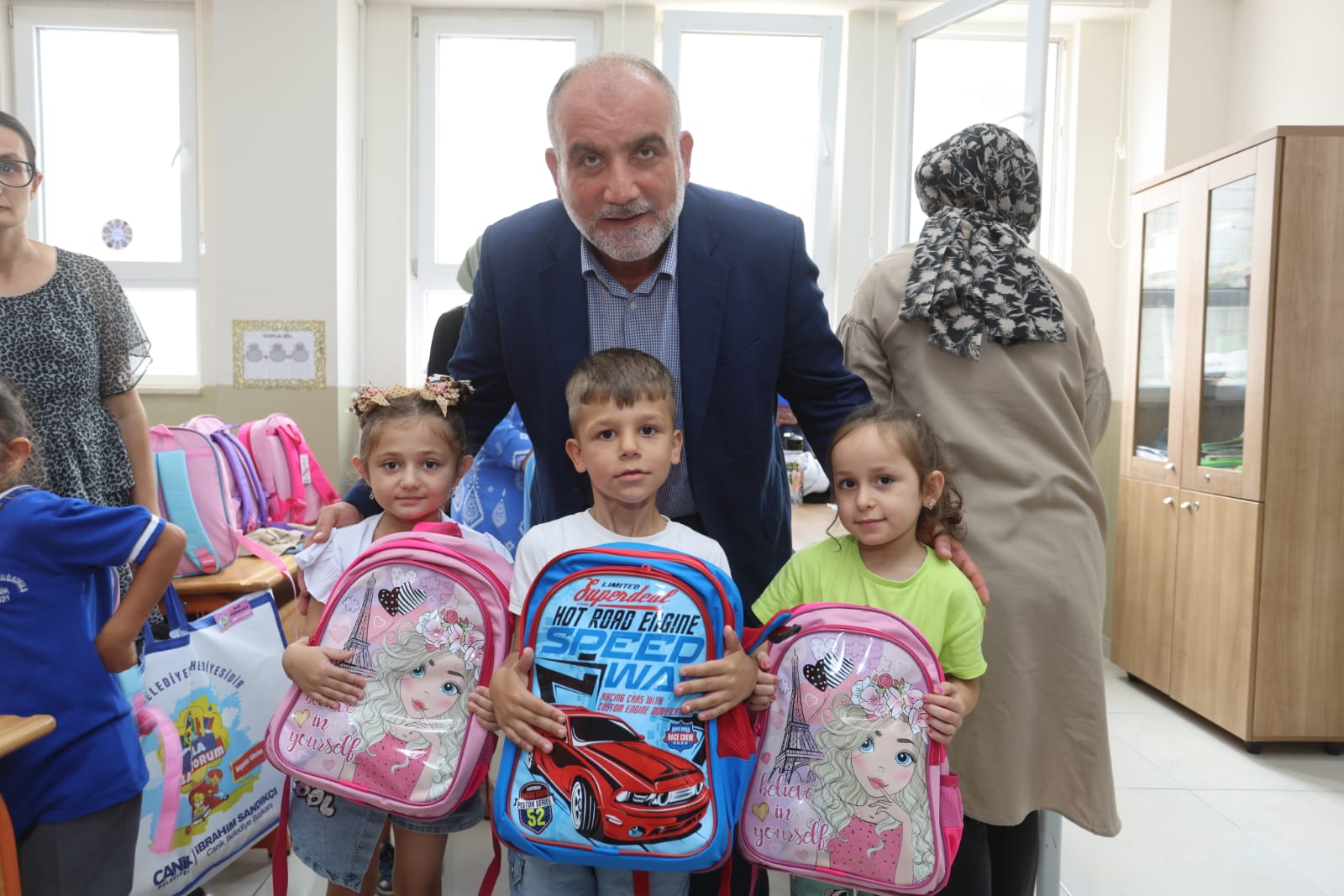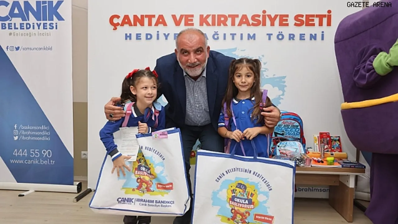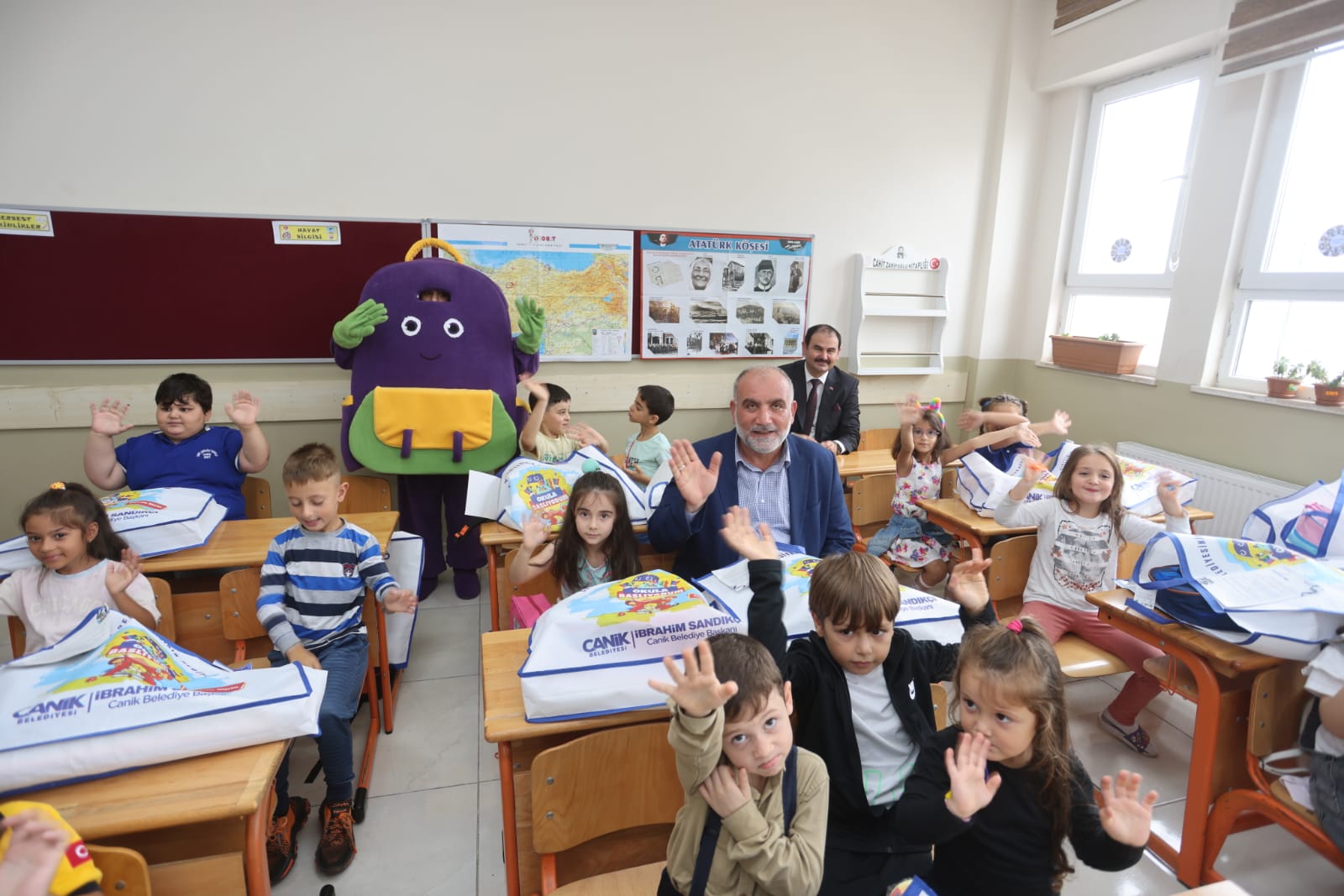 İlçedeki ilkokul birinci sınıfa başlayan tüm öğrencelere, çanta ve kırtasiye setlerinin sıralarında teslim edildiğini ifade eden Canik Belediye Başkanı İbrahim Sandıkçı, Öğrencilerimizin yaşamları boyunca daima zihinlerinde yer alacak bu özel günde onların sevincini paylaşıyor, çanta ve kırtasiye setlerini kendilerine hediye ediyoruz. Okulun ilk günü çanta ve kırtasiye setlerimizi öğrencilerimizle buluşturduk. Çanta ve kırtasiye seti desteğimizle öğrencilerimizi sevindirirken, ailelerimizin ev ekonomilerine bir nebze olsun katkıda bulunmuş oluyoruz. Sırt çantalarımızı, çocuklarımızın rahatlıkla kullanabileceği bir şekilde olmasını en önemli etmen olarak belirledik. Kırtasiye setlerimizin içerisinde kaleminden defterine, rengârenk kuru ve pastel boyalardan, fon karton ve yapıştırıcısına kadar yıl boyunca ihtiyaç duyacağı tüm kırtasiye ürünleri yer alıyor. Öğrencilerimize beslenme çantası ve su matarası da hediye ettiğimiz bugün de, ayrıca her bir yavrumuza abaküs, sayı fasulyesi ve çubuklarından oluşan yardımcı eğitim materyalleri de hediye ettik. İnşallah eğitme yönelik desteklerimizi arttırarak sürdürecek ve eğitim hayatı boyunca öğrencilerimizin yanında yer almaya devam edeceğiz” şekilde ifade etti.