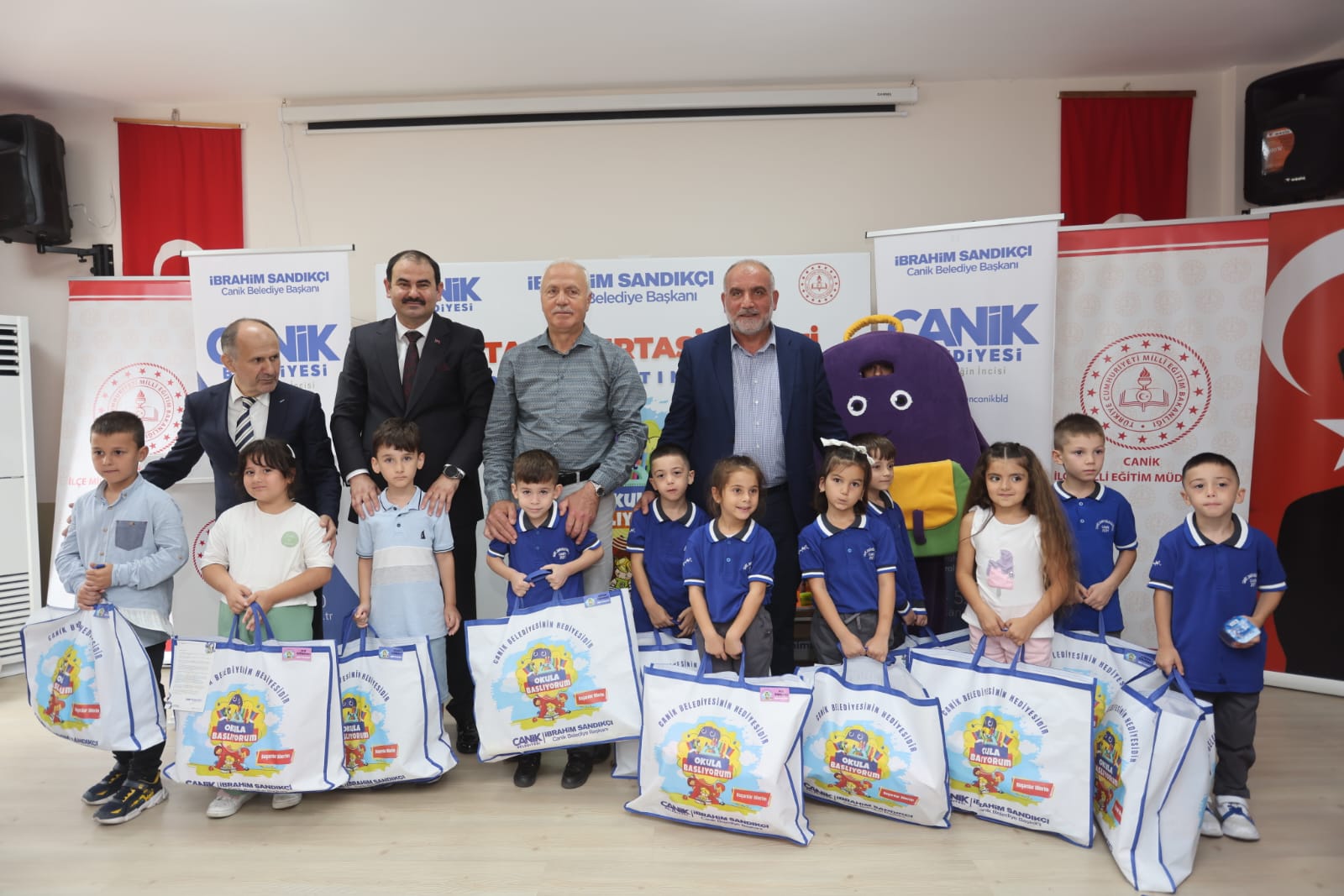 Canik Cahit Zarifoğlu İlkokulu’nda gerçekleşen Çanta ve Kırtasiye Seti Hediye Dağıtım Töreni’ne Canik Belediye Başkanı İbrahim Sandıkçı, Samsun İl Milli Eğitim Müdür Yardımcısı Celalettin Sula, Canik İlçe Milli Eğitim Müdürü Zahit Köseoğlu, öğretmenler, veliler ve öğrenciler katıldı. Canik Belediye Başkanı İbrahim Sandıkçı, protokol üyeleriyle birlikte öğrencileri sınıflarında ziyaret ederek, başarı dileklerinde bulundu. Canik Belediyesi, sıralarla ilk defa buluşan öğrenciler için sınıflarda aktivite ve etkinlikler düzenlerken, Canik’te bulunan 25 okulda yaklaşık 2 bin öğrenciye çanta ve kırtasiye seti hediye etti.
