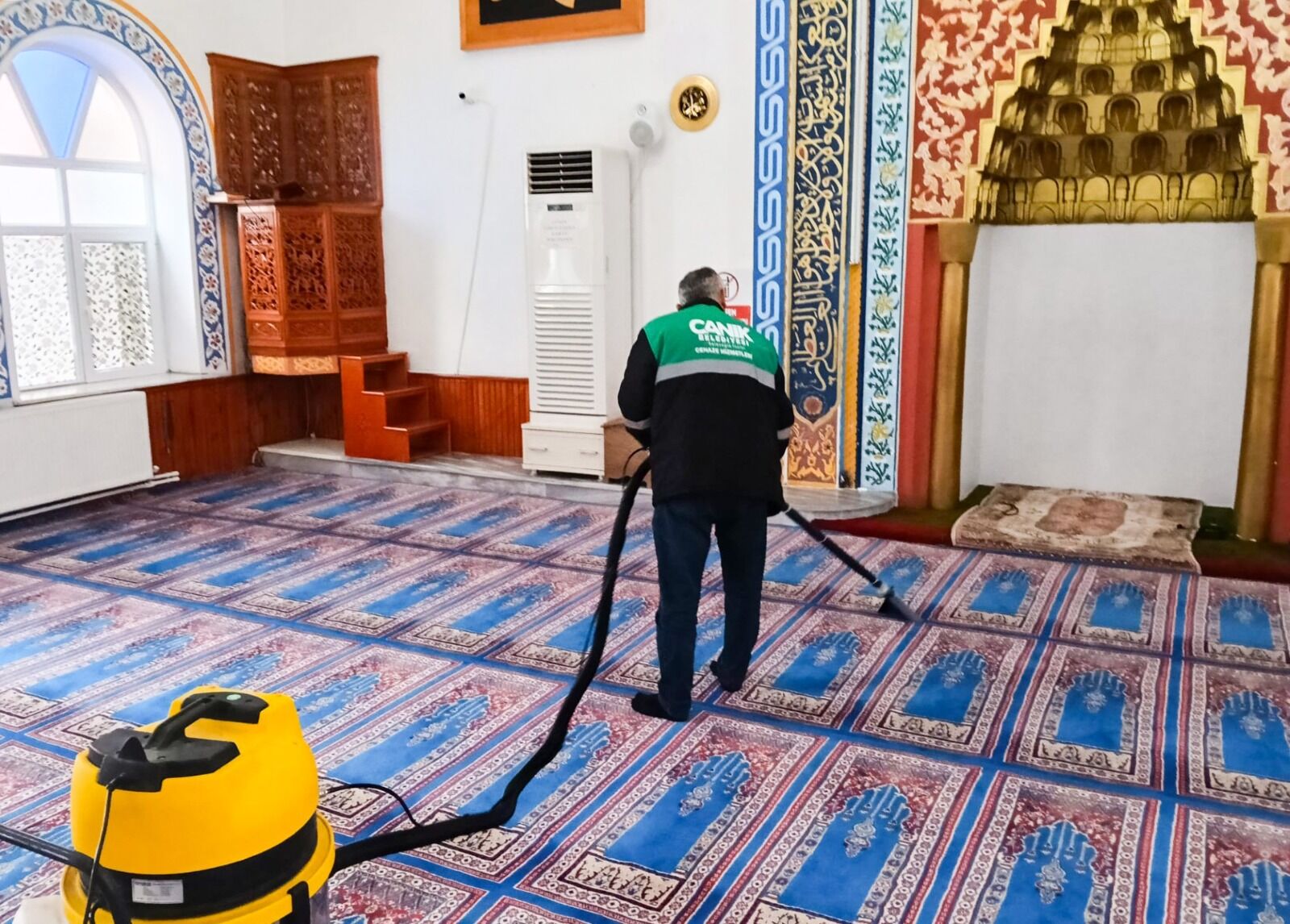 Canik Belediyesi, ilçedeki camilere yönelik temizlik çalışmalarına hummalı bir şekilde devam ediyor. İlçedeki camilerin halılarını düzenli olarak yıkayan ve süpüren Canik Belediyesi ekipleri, minberden pencere kenarlarına kadar camileri köşe bucak temizliyor. Vatandaşların daha sağlıklı bir ortamda ibadetlerini yapabilmeleri adına camileri özveriyle temizleyen ekipler, camilerin avlu bölümlerini ise dezenfektanlı su ile yıkıyor.