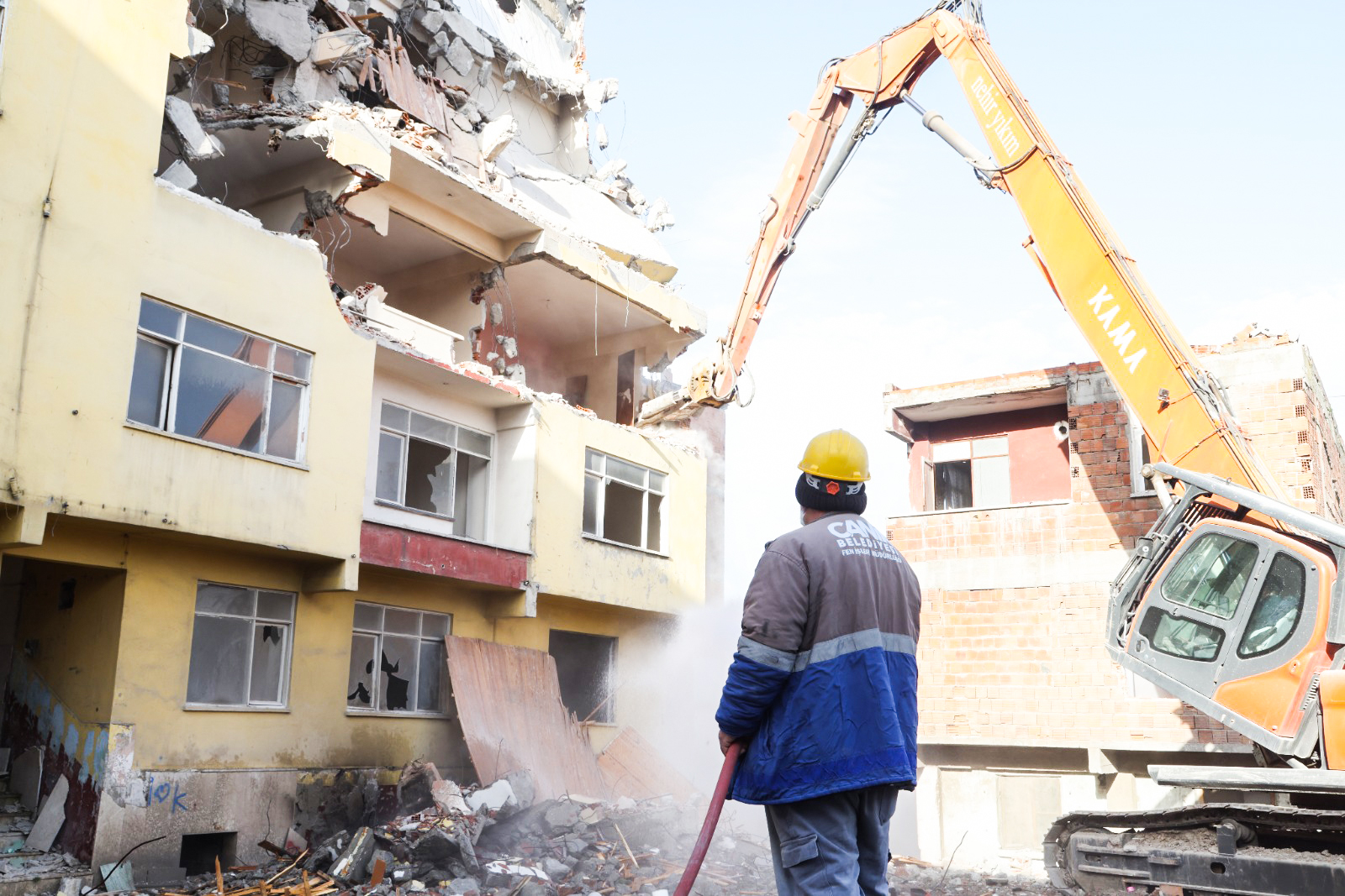 Canik Belediye Başkanı İbrahim Sandıkçı, depreme dayanıklı ve güvenli yaşam alanlarını ilçeye kazandırmak için büyük bir gayretle çalışmaya devam ettiklerini belirtti. Soğuksu Mahallesi'nde sürdürdükleri kentsel dönüşüm projesi çerçevesinde mahallede yer alan 741 depreme dayanıksız ve yüksek riskli binanın yıkım işlemlerine devam ettiklerini söyleyen Başkan İbrahim Sandıkçı, kentsel dönüşüm çalışmalarıyla vatandaşları, depreme karşı dayanıklı ve güvenli konutlar ile yeni sosyal donatı alanlarıyla buluşturacaklarını ifade etti. Kentsel dönüşüm çalışmalarıyla depreme dayanıksız 2 bin 864 bağımsız birimden oluşan 741 binayı bertaraf edeceklerini vurgulayan Başkan İbrahim Sandıkçı, "Canik'imizde güvenli yaşam alanları için var gücümüzle çalışmaya devam ediyoruz" dedi.