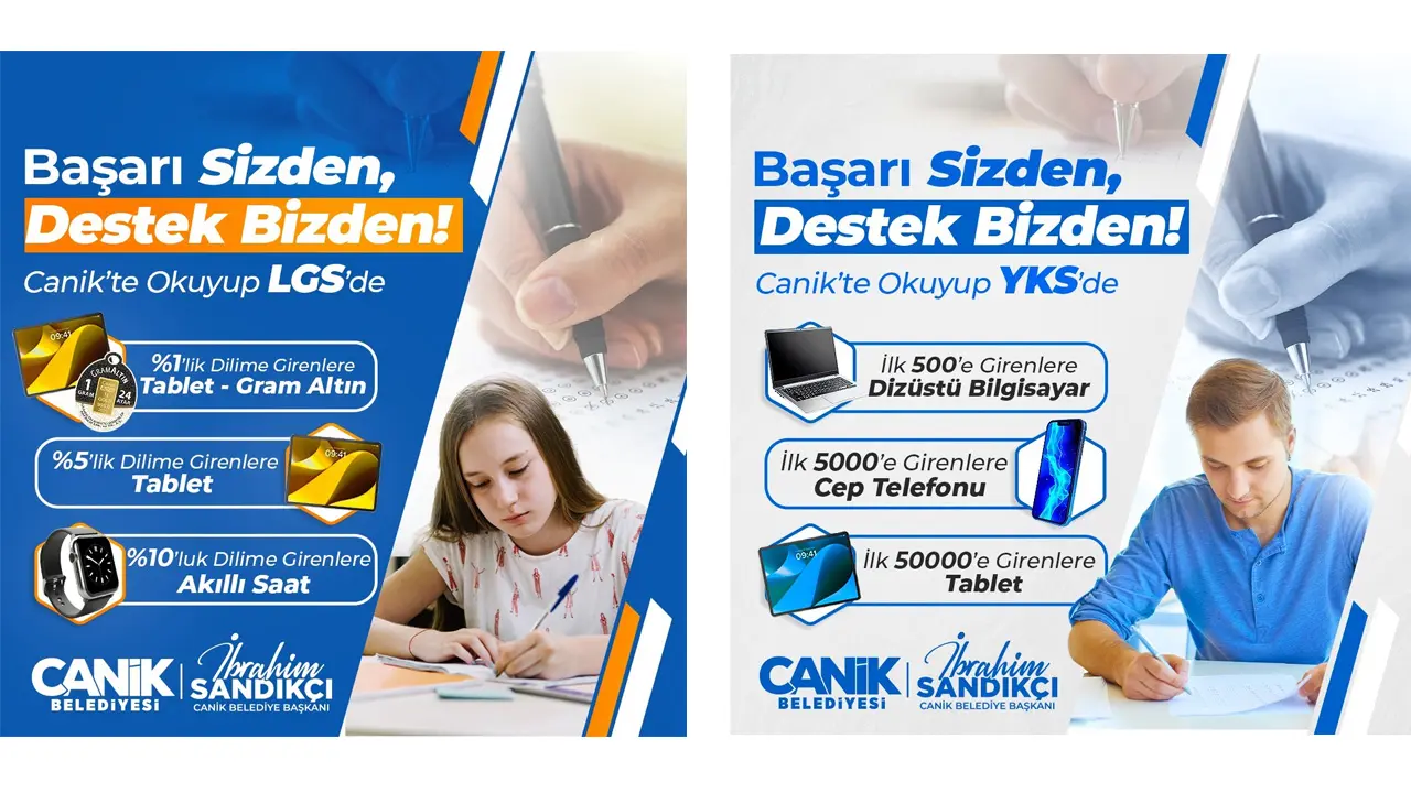 Canik Belediyesi, bu yıl da ödül kriterlerini netleştirdi. 2025 YKS ve LGS’de başarı gösteren öğrencilere başarı derecelerine göre çeşitli ödüller verilecek.